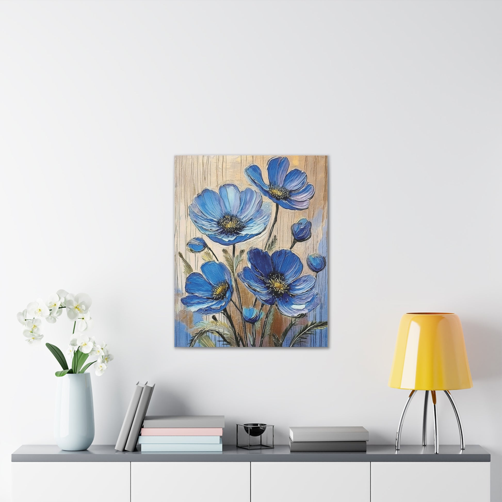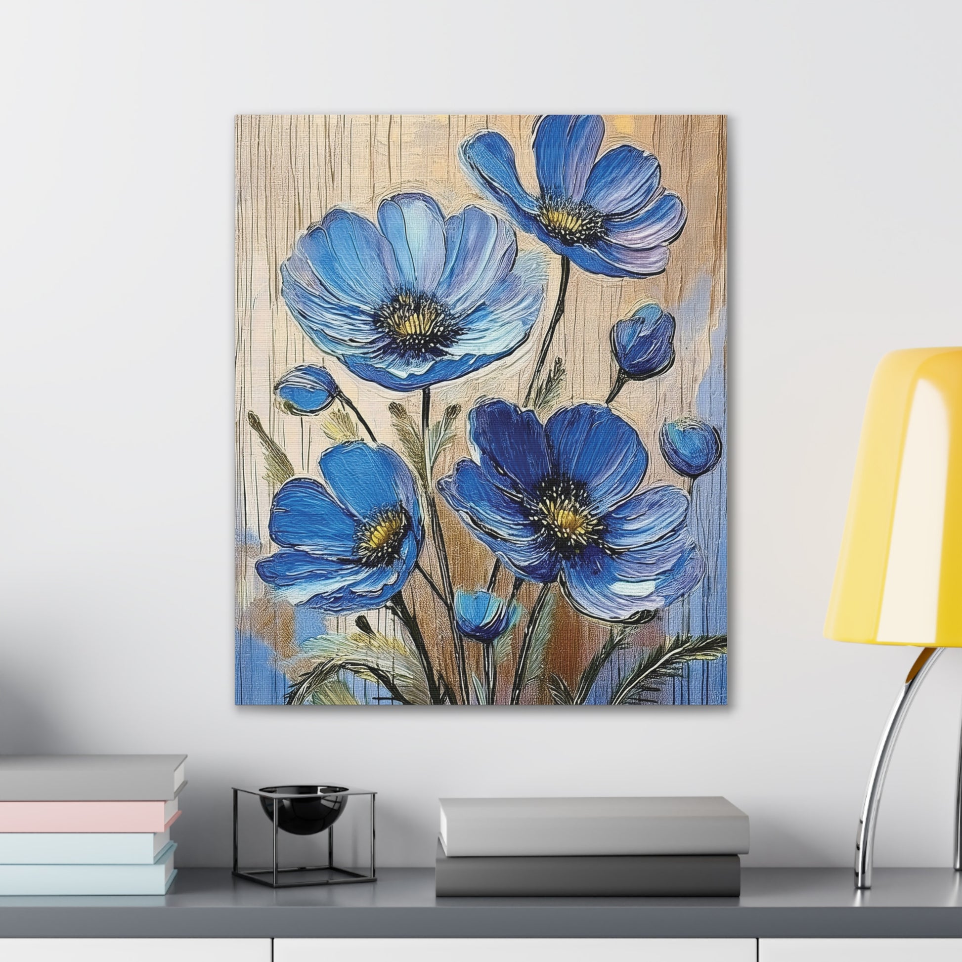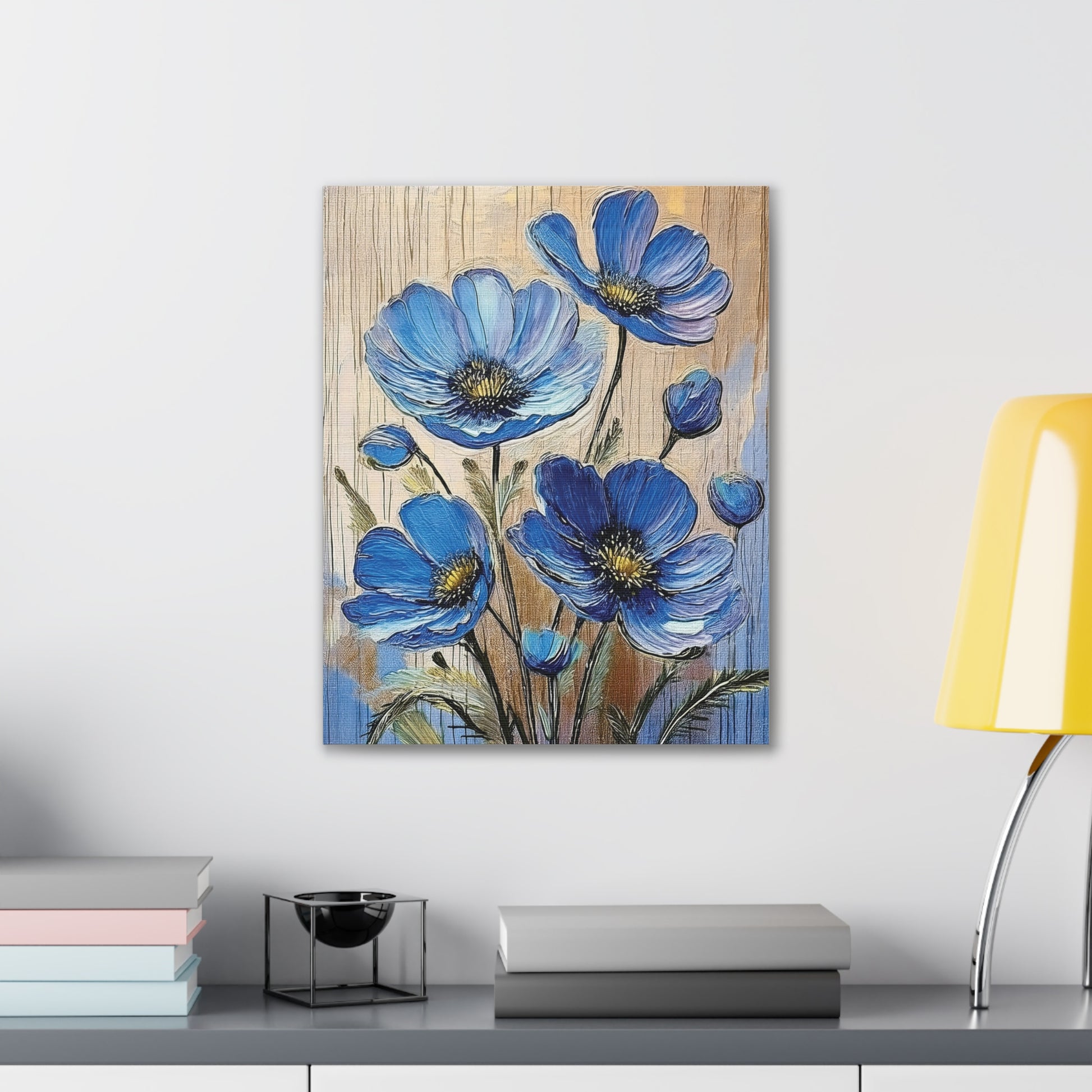 Blue Floral Canvas Wall Art, Home Decor, Gift for Flower Lovers, Botanical Artwork, Spring Decor, Unique Housewarming Present