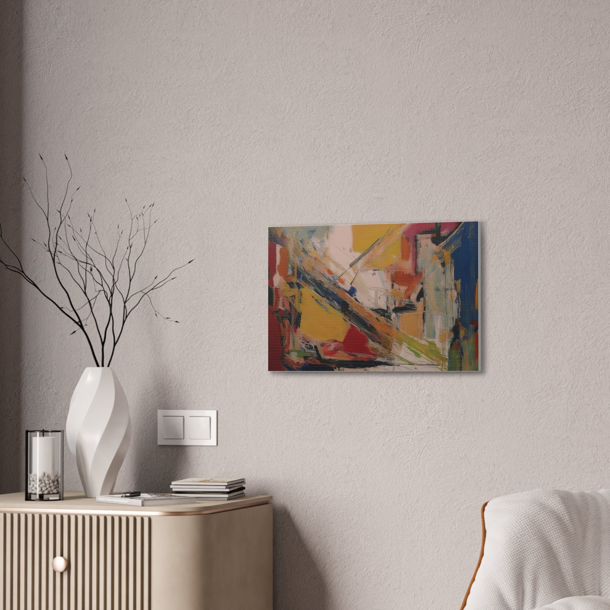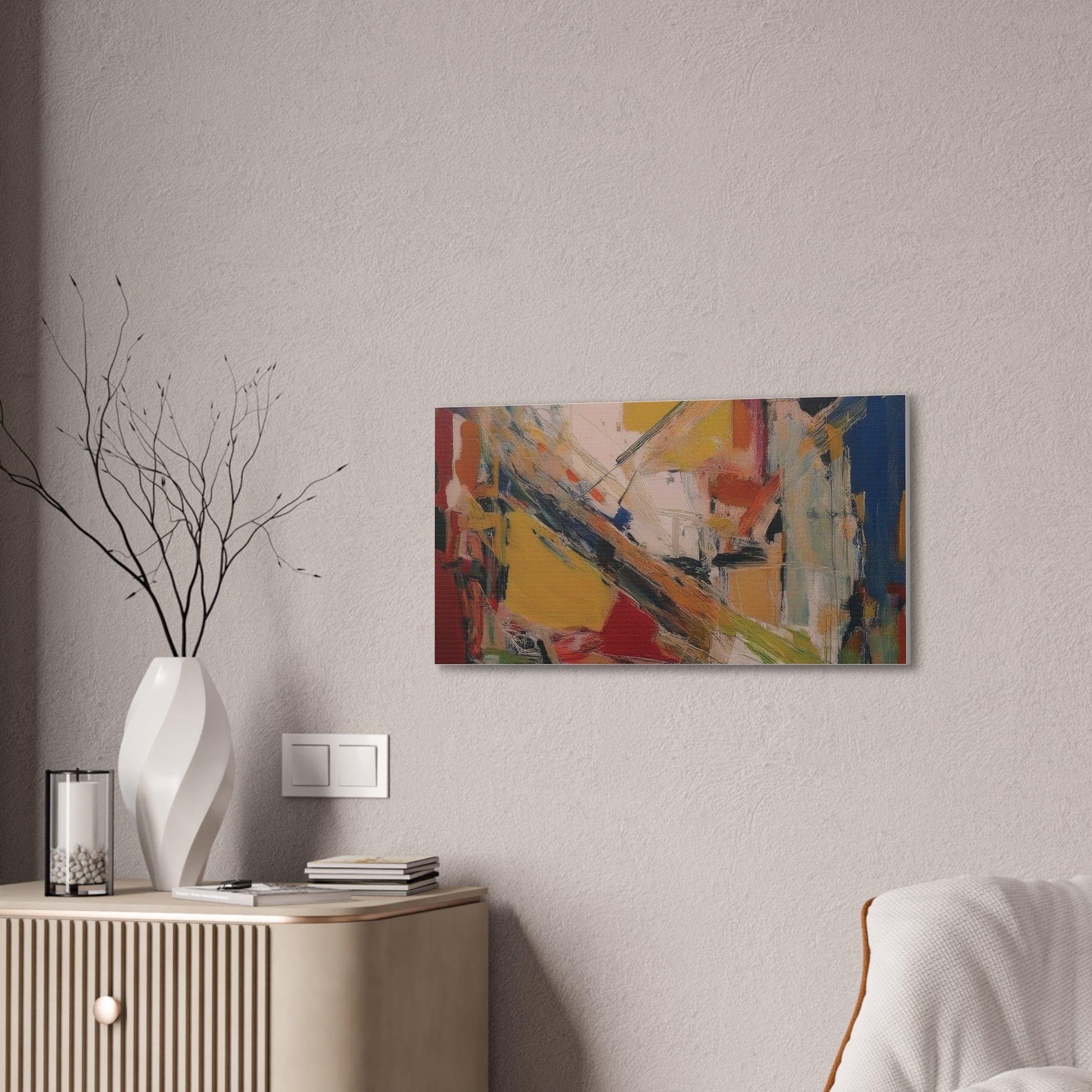 An amazing modern abstract canvas stretched art piece that adds a touch of contemporary style to any room. Perfect for art enthusiasts and interior design lovers, this vibrant canvas is great for decorating living spaces or offices. Ideal for gift-giving during birthdays, housewarmings, or as a holiday present.