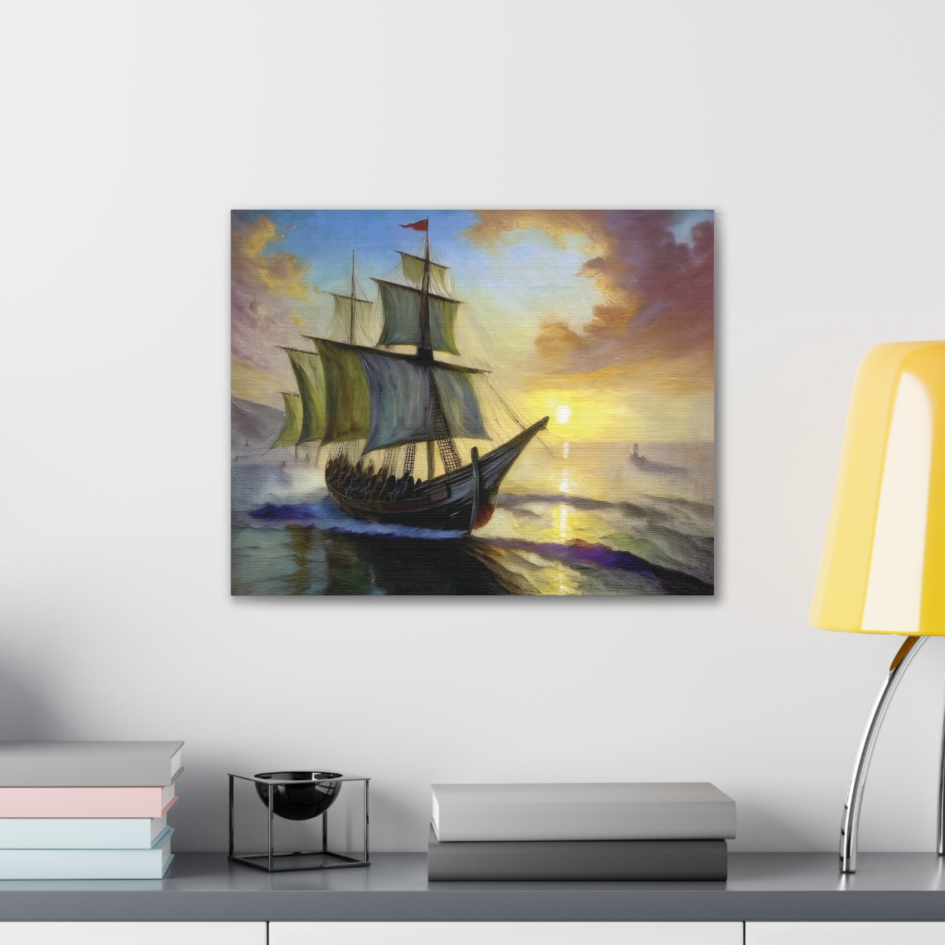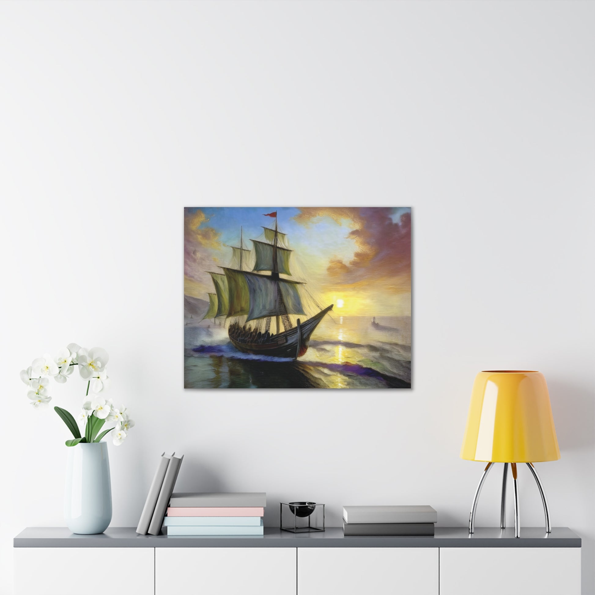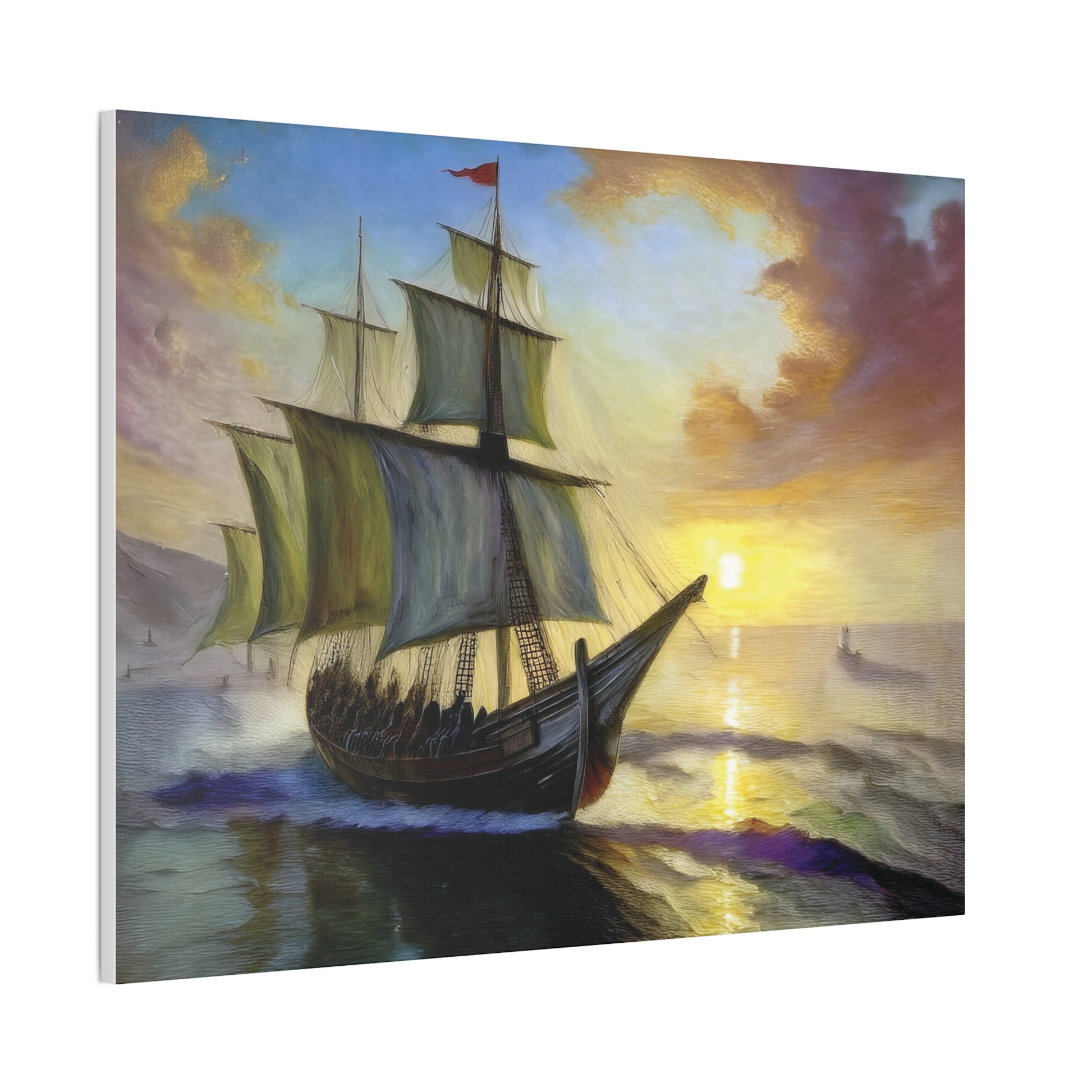 Transform your space with this stunning canvas art piece that captures the majestic beauty of a sailing ship at sunset. Perfect for adding a touch of adventure and sophistication to your home, this canvas artwork invites a sense of wanderlust and exploration. Ideal for nautical enthusiasts, art lovers, or anyone looking to elevate their decor, this piece serves as a wonderful conversation starter. It fits seamlessly into any setting, whether it be your living room, office, or a cozy reading nook. This canvas makes a thoughtful gift for occasions like housewarming parties, birthdays, or even holidays like Christmas and Thanksgiving, evoking a warm, inviting atmosphere wherever it is displayed.