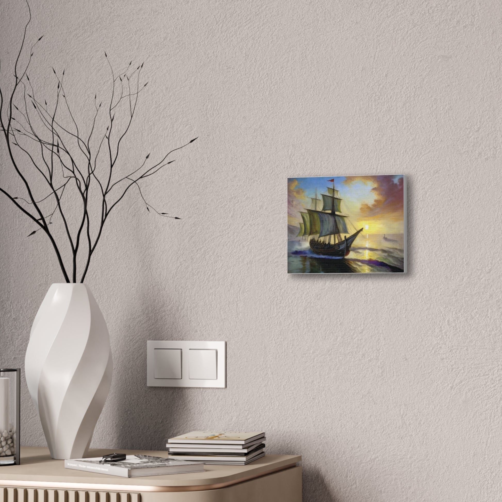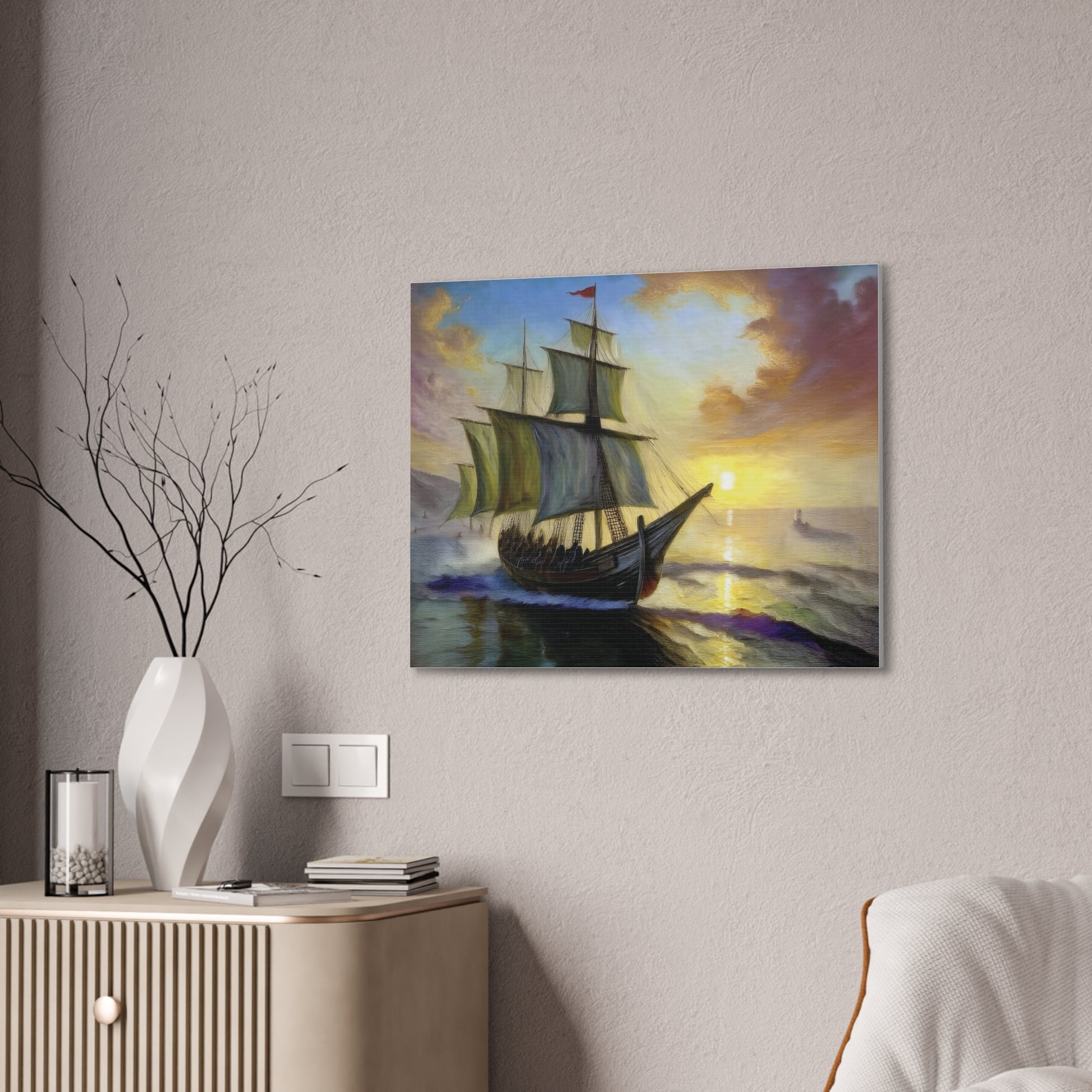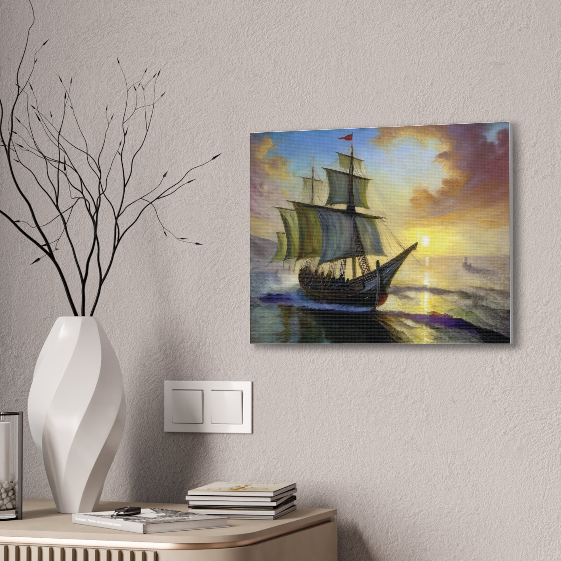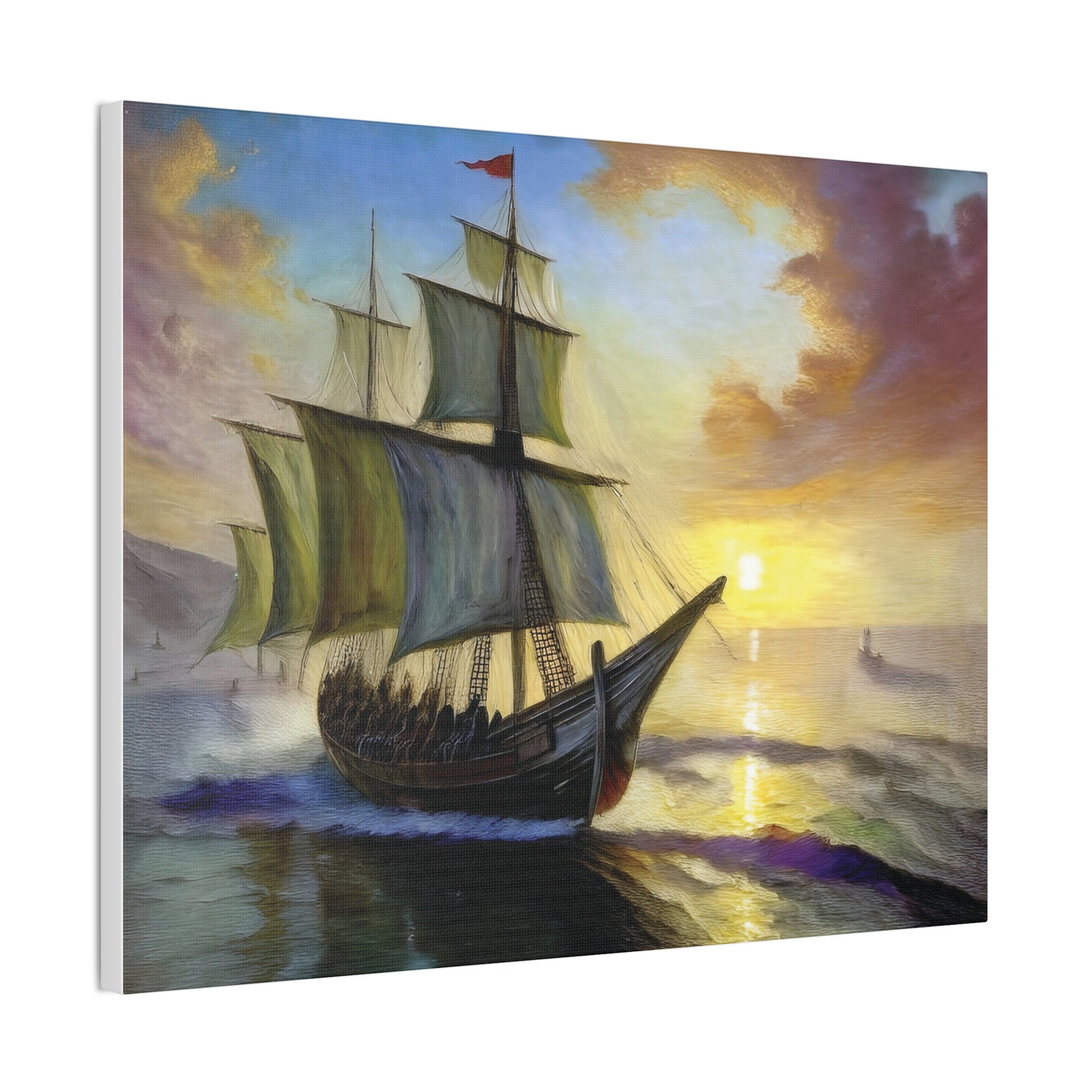 Transform your space with this stunning canvas art piece that captures the majestic beauty of a sailing ship at sunset. Perfect for adding a touch of adventure and sophistication to your home, this canvas artwork invites a sense of wanderlust and exploration. Ideal for nautical enthusiasts, art lovers, or anyone looking to elevate their decor, this piece serves as a wonderful conversation starter. It fits seamlessly into any setting, whether it be your living room, office, or a cozy reading nook. This canvas makes a thoughtful gift for occasions like housewarming parties, birthdays, or even holidays like Christmas and Thanksgiving, evoking a warm, inviting atmosphere wherever it is displayed.