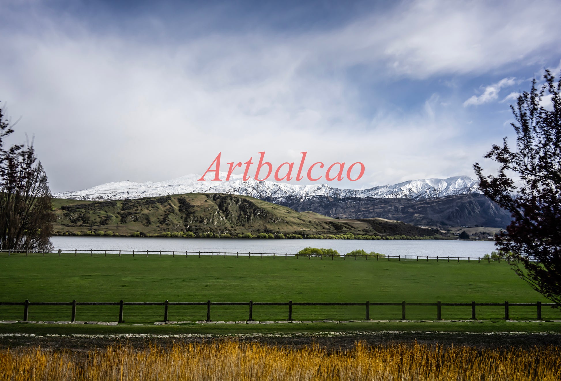 Breathe in the untouched beauty of New Zealand's wilderness with this stunning landscape. Crystal-clear lake waters meet vibrant emerald-green lawns, all cradled by majestic mountains with snow-dusted peaks. The unusual absence of reflections on the lake's surface creates a dreamlike, almost surreal quality that will elevate any space.