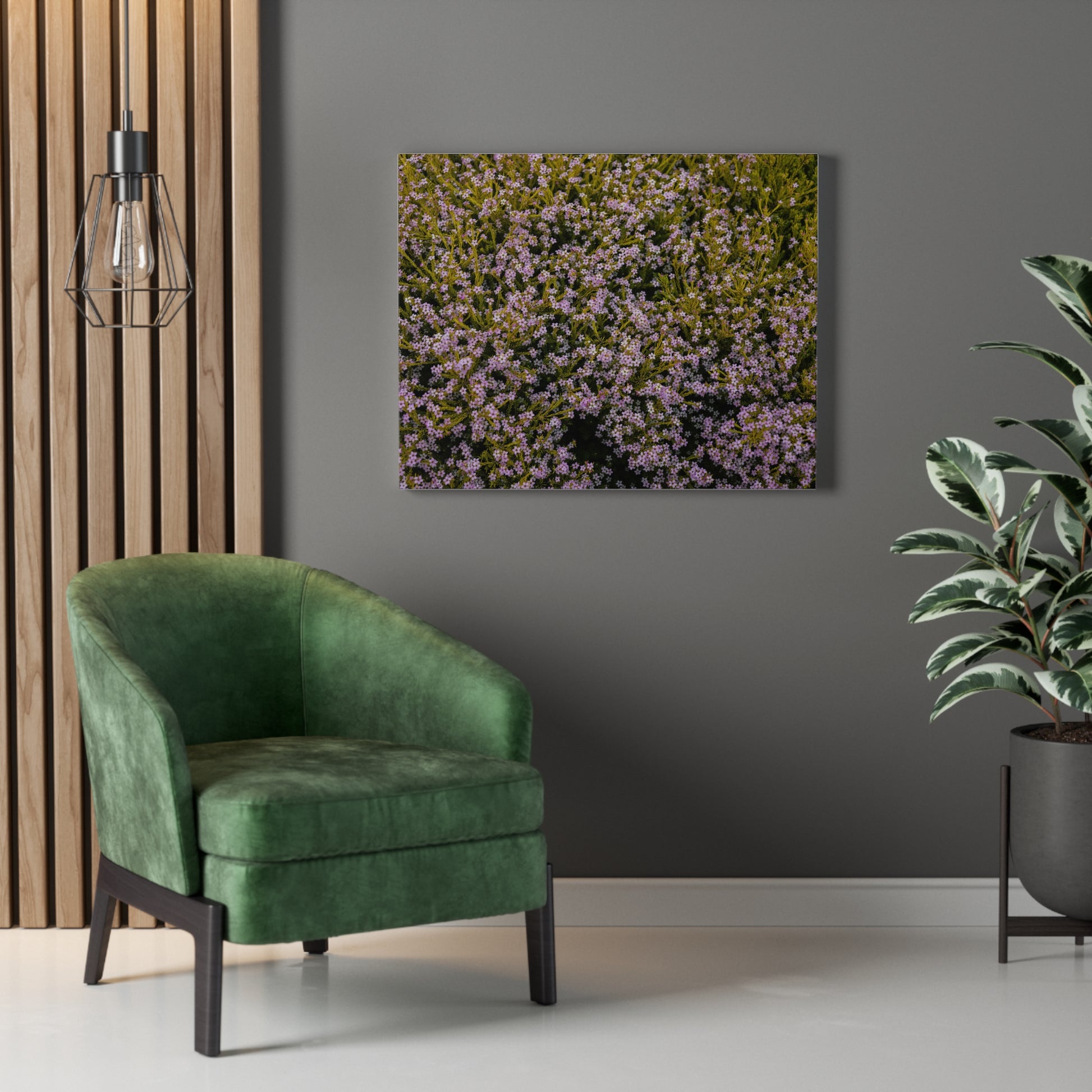 This canvas print features a beautiful image of lots of tiny flowers, creating a serene and calming atmosphere. Perfect for nature lovers and those who appreciate delicate floral designs. Ideal for home decor, adding a touch of nature to any room.