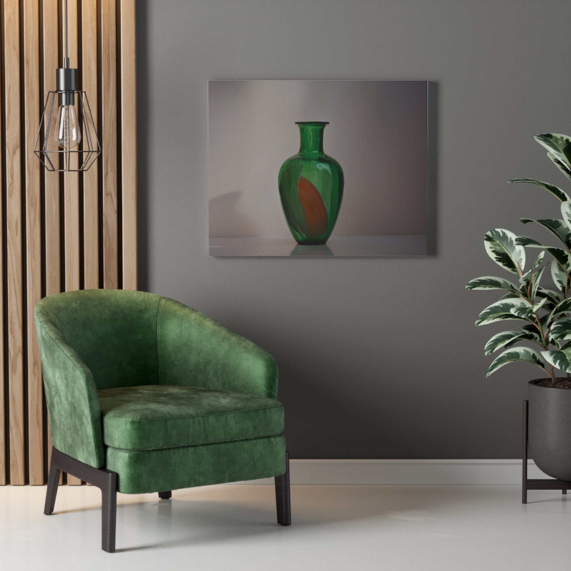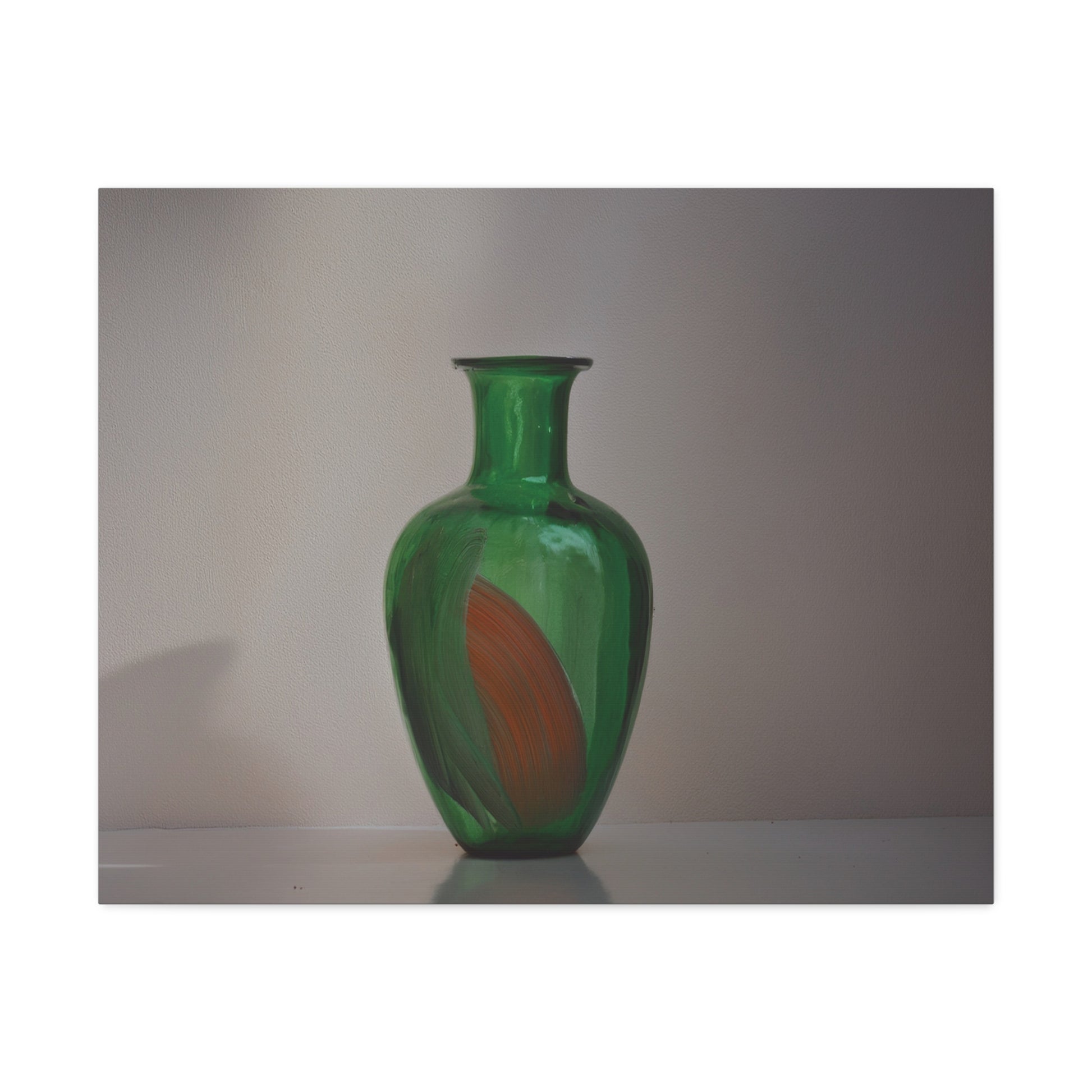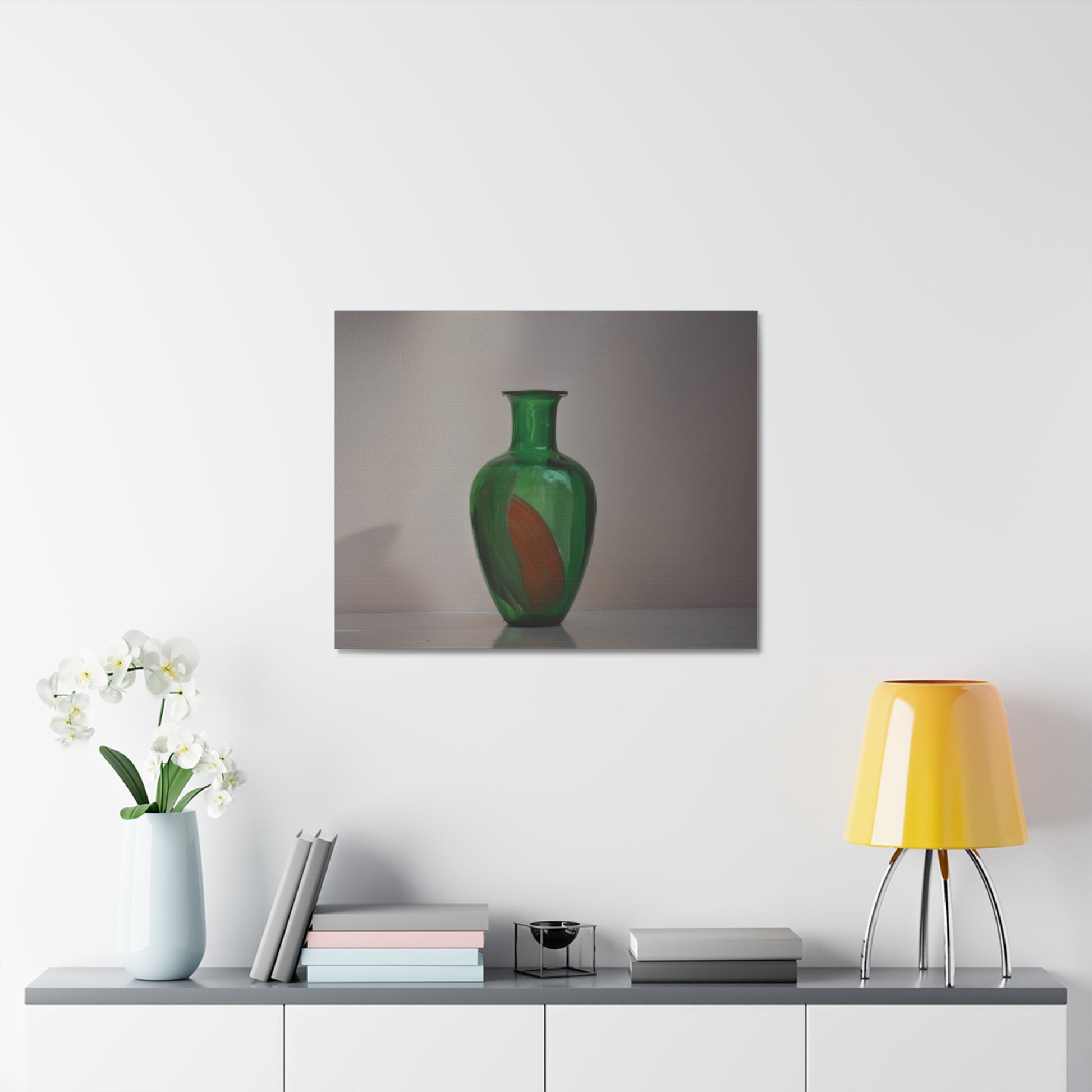 A minimalistic painting of a green glass vase on a high-quality cotton canvas, perfect for adding a touch of elegance to any room. This canvas art is ideal for art enthusiasts, home decor lovers, and those looking to elevate their living space with a stylish and serene vibe. Perfect for birthdays, housewarmings, and art appreciation occasions.
