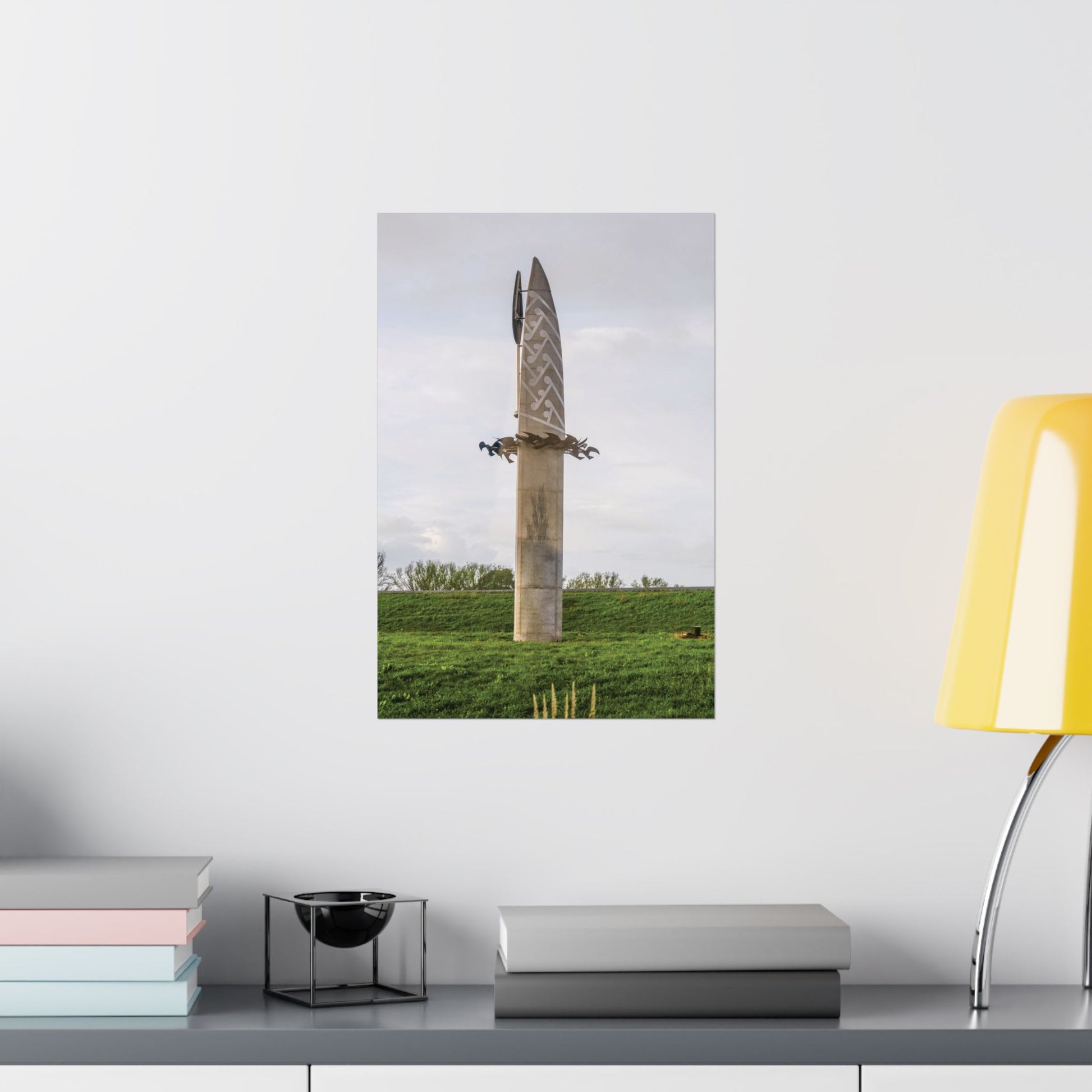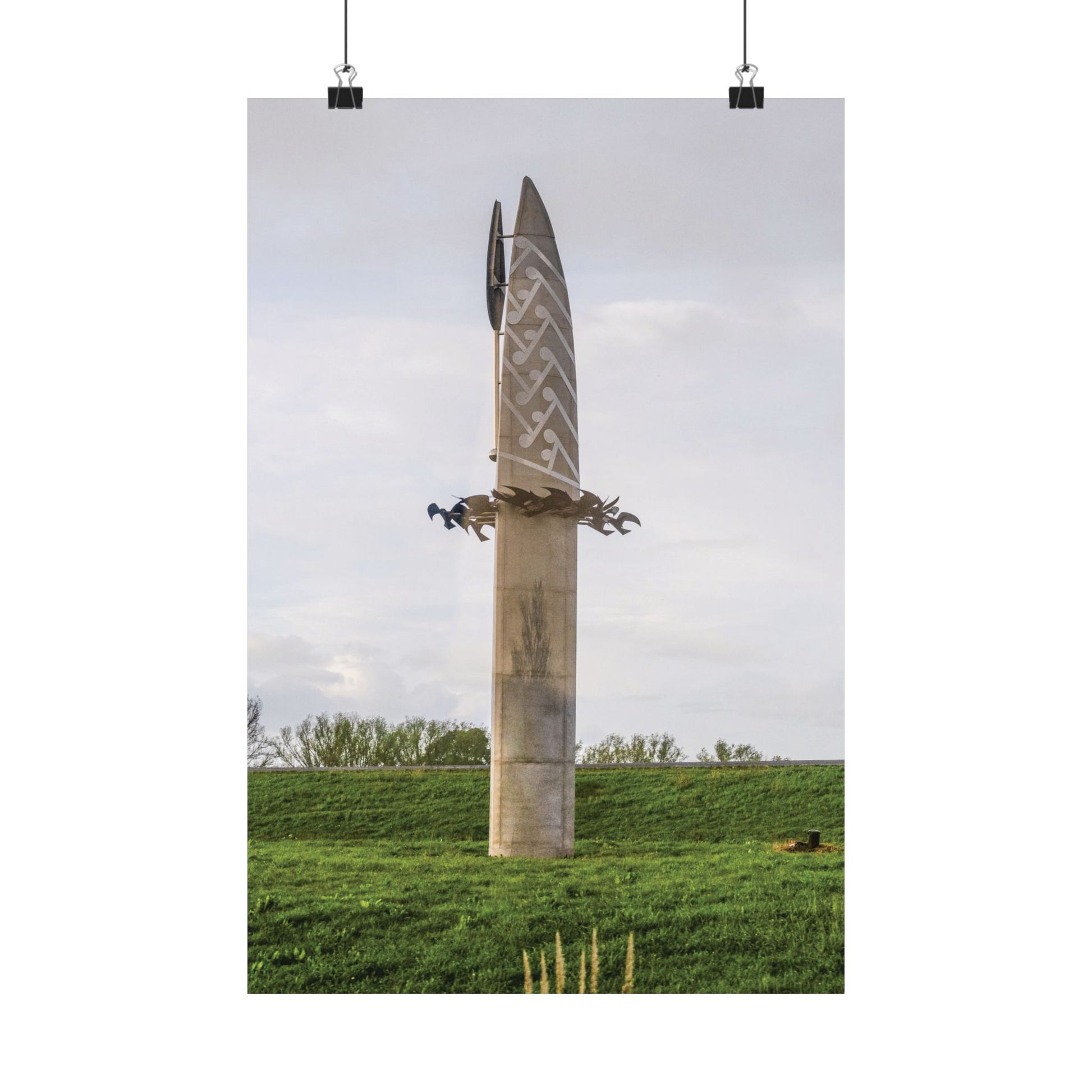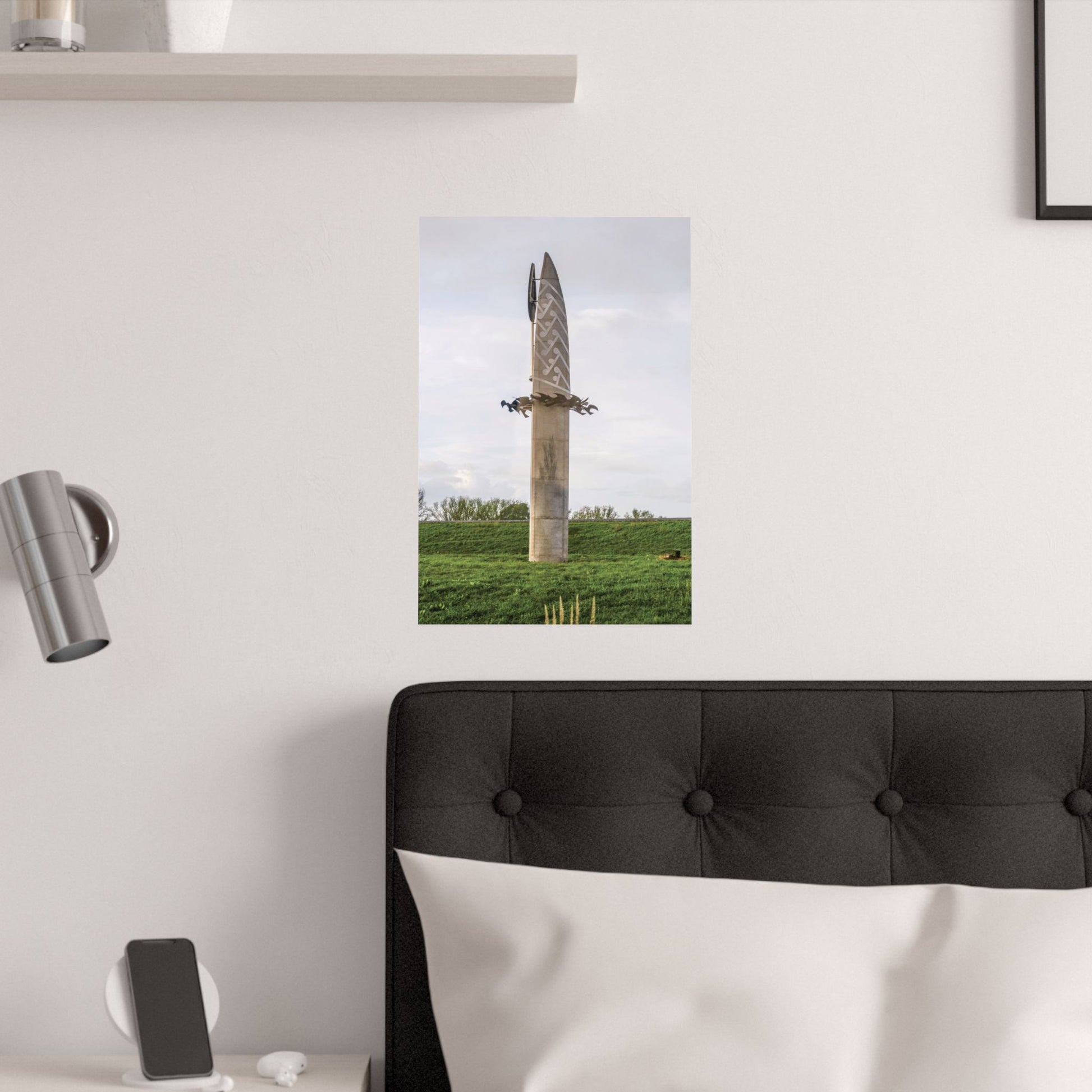 A stunning Maori Totem pole design printed on a satin poster, representing the boats by which they came to New Zealand. This poster gives a cultural and artistic vibe, perfect for art enthusiasts and those interested in Maori culture. Ideal for decorating living spaces, offices, or as a gift for someone who appreciates unique art. Relevant for cultural celebrations, art events, and home decor.