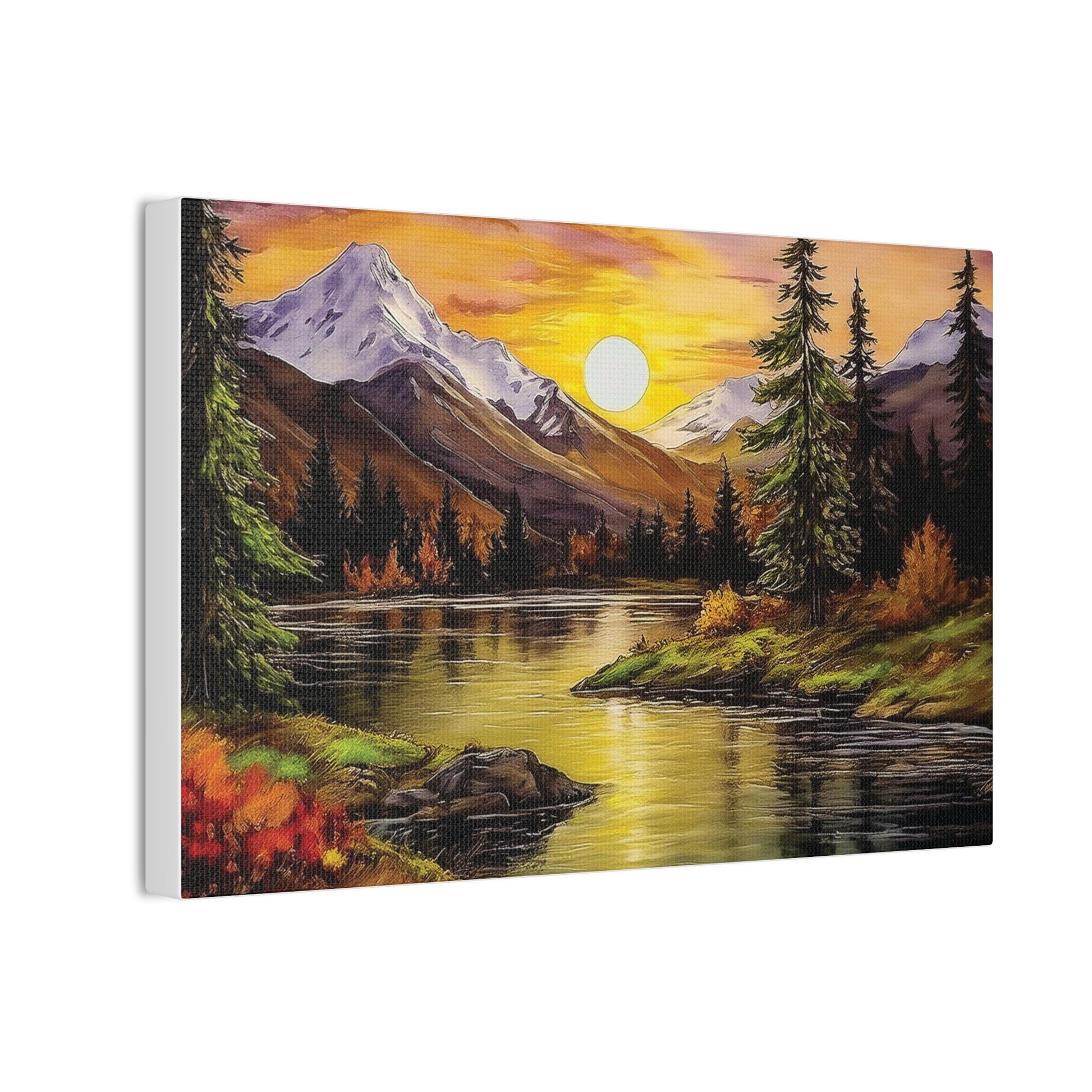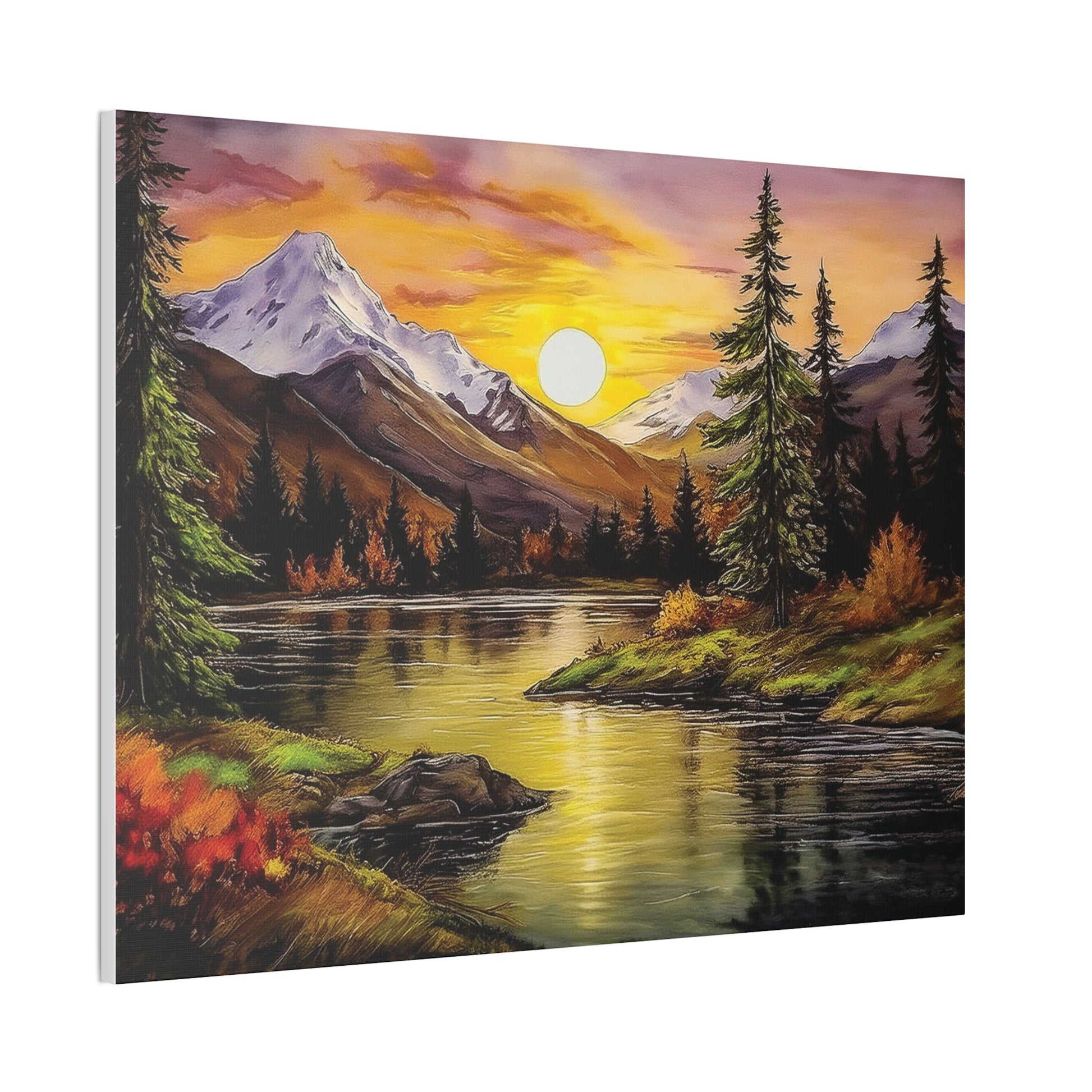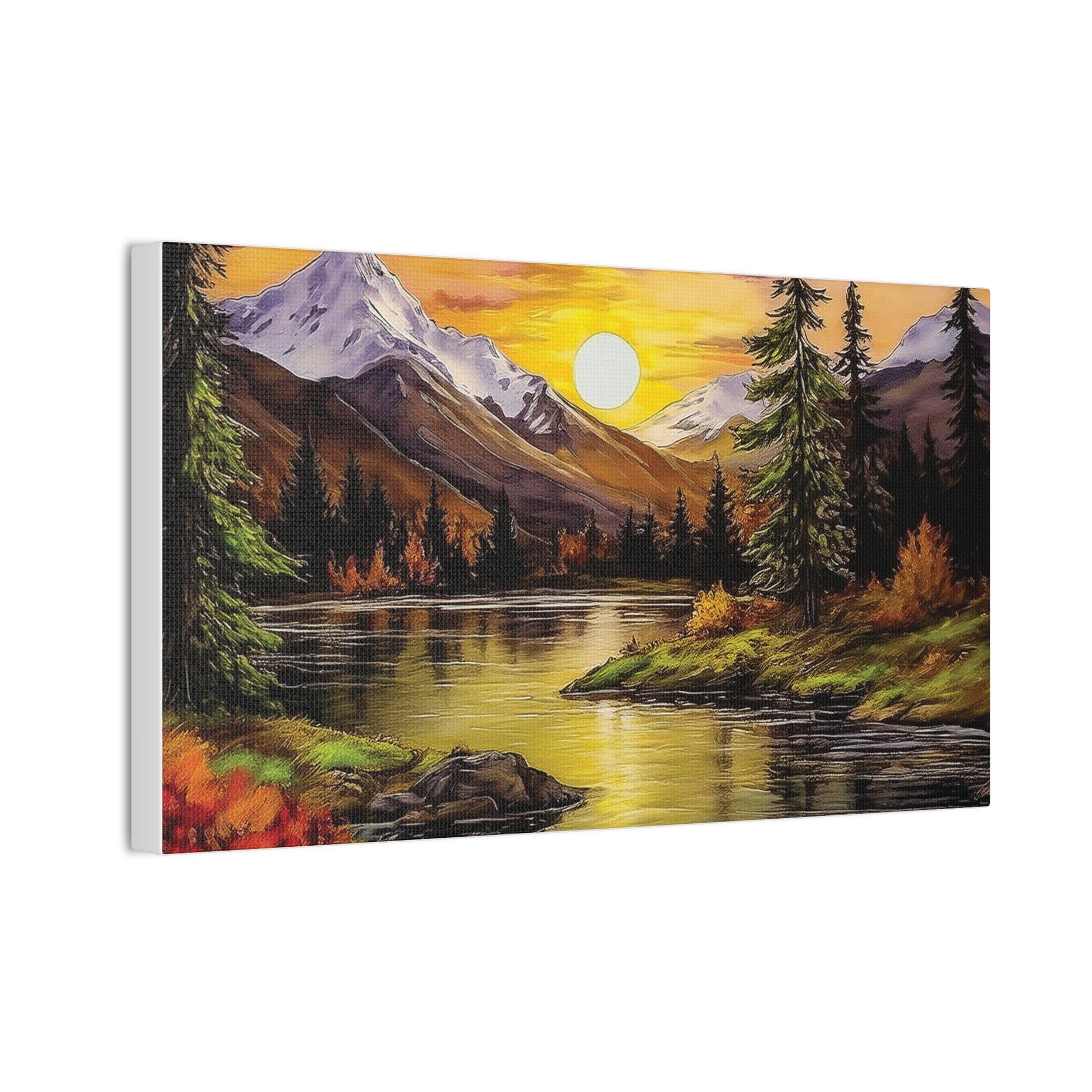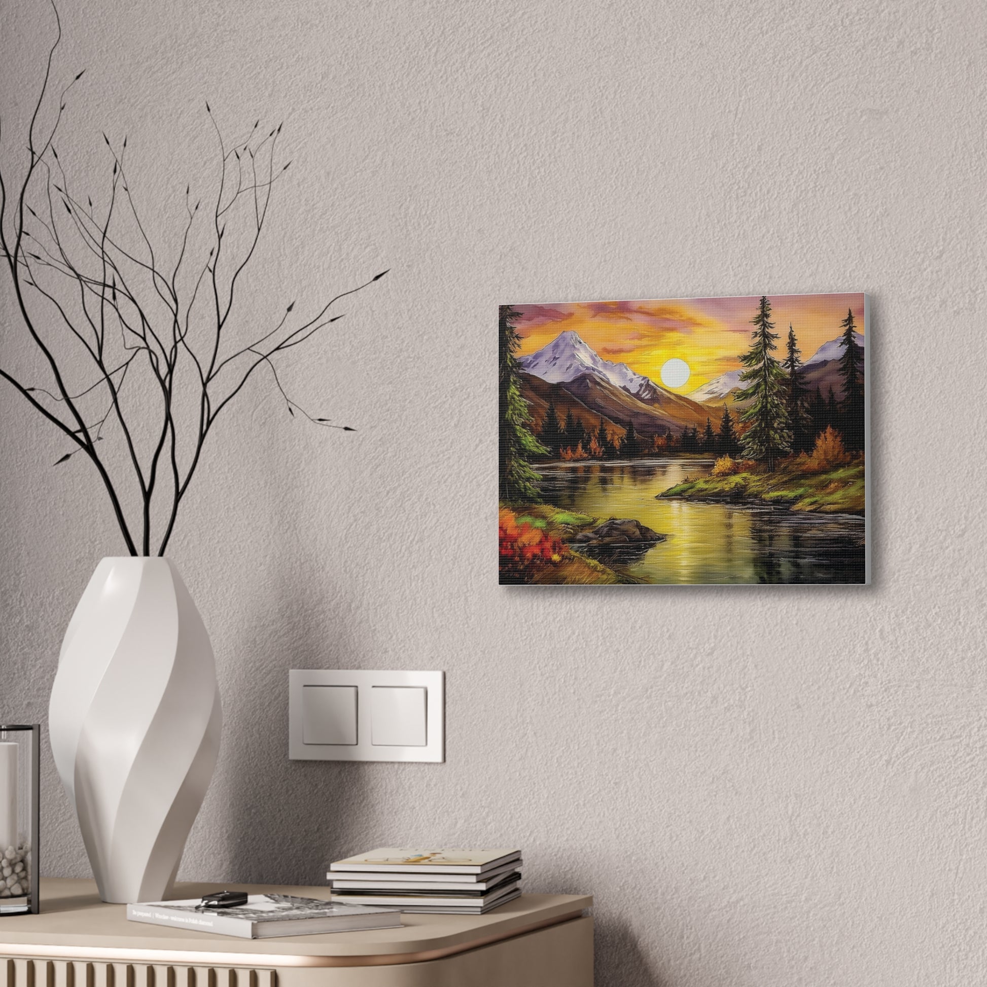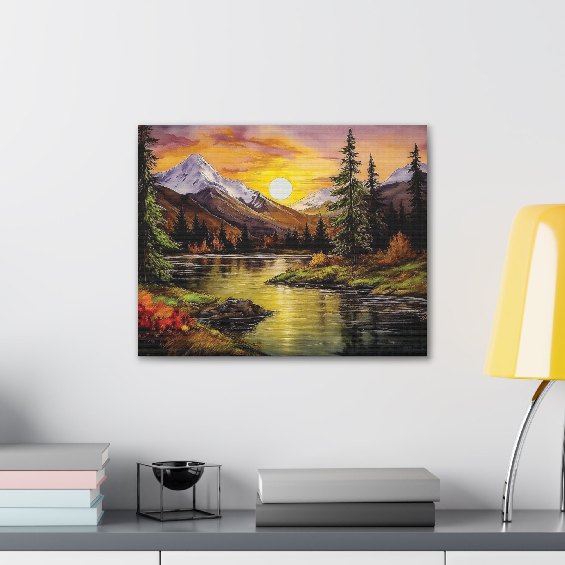 Transform your living space with this stunning canvas print. This captivating piece showcases a serene sunset scene, complete with majestic mountains and a peaceful river. Its vibrant colors bring life to any room, creating an uplifting atmosphere that invites relaxation and reflection. Perfect for nature lovers and anyone looking to enhance their home décor, this canvas print fits seamlessly into various settings—be it the living room, bedroom, or office. Ideal for holidays, housewarming gifts, or just as a special treat for yourself, it's a versatile addition that brightens up celebrations and everyday moments alike. Elevate your surroundings with art that inspires calm and connection with nature.