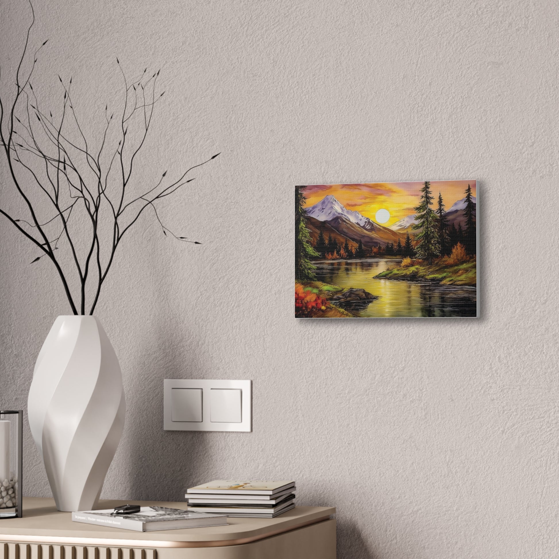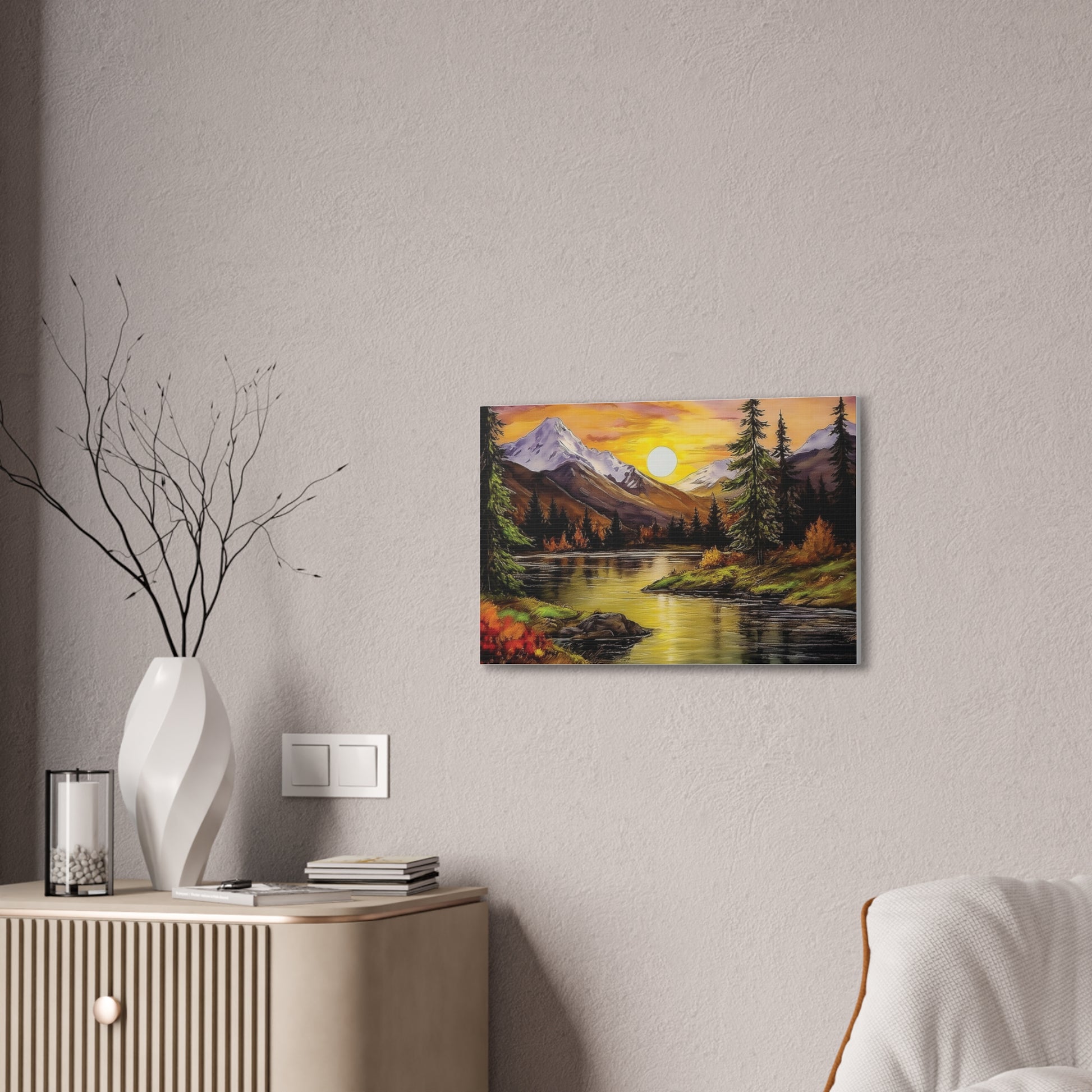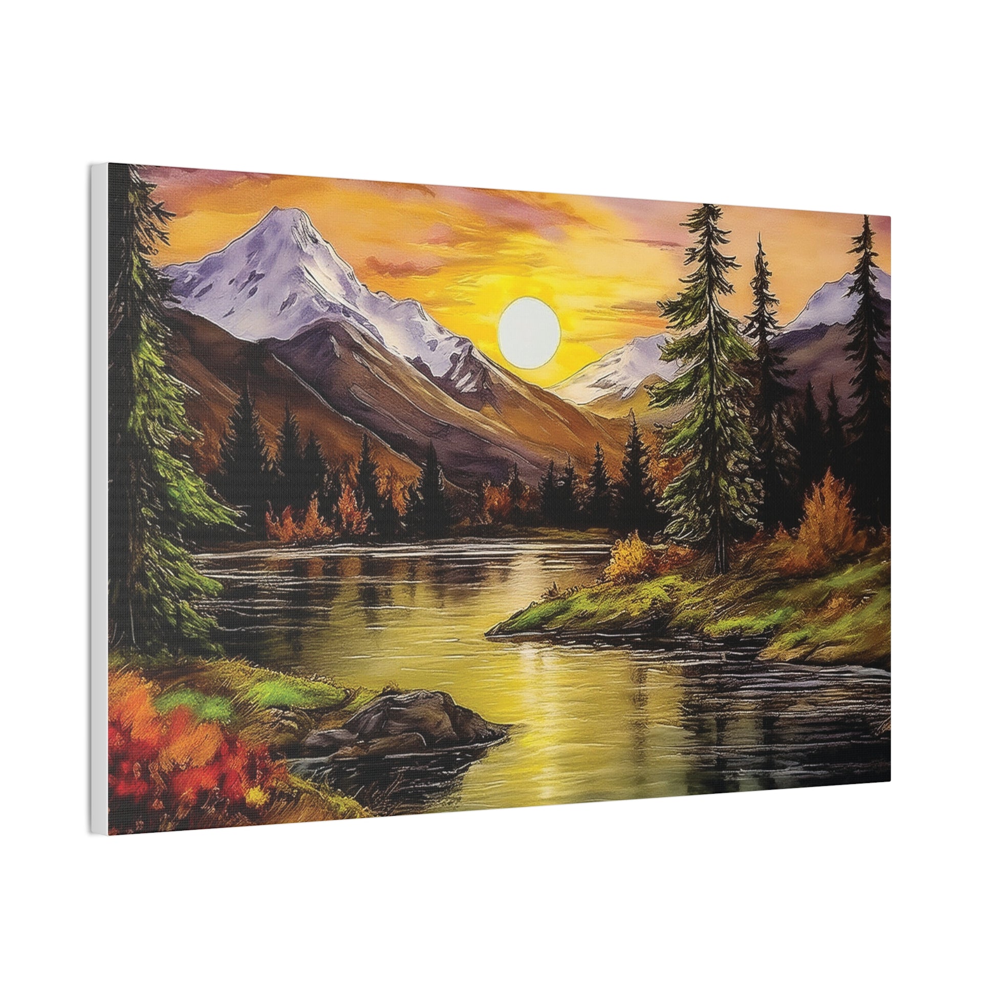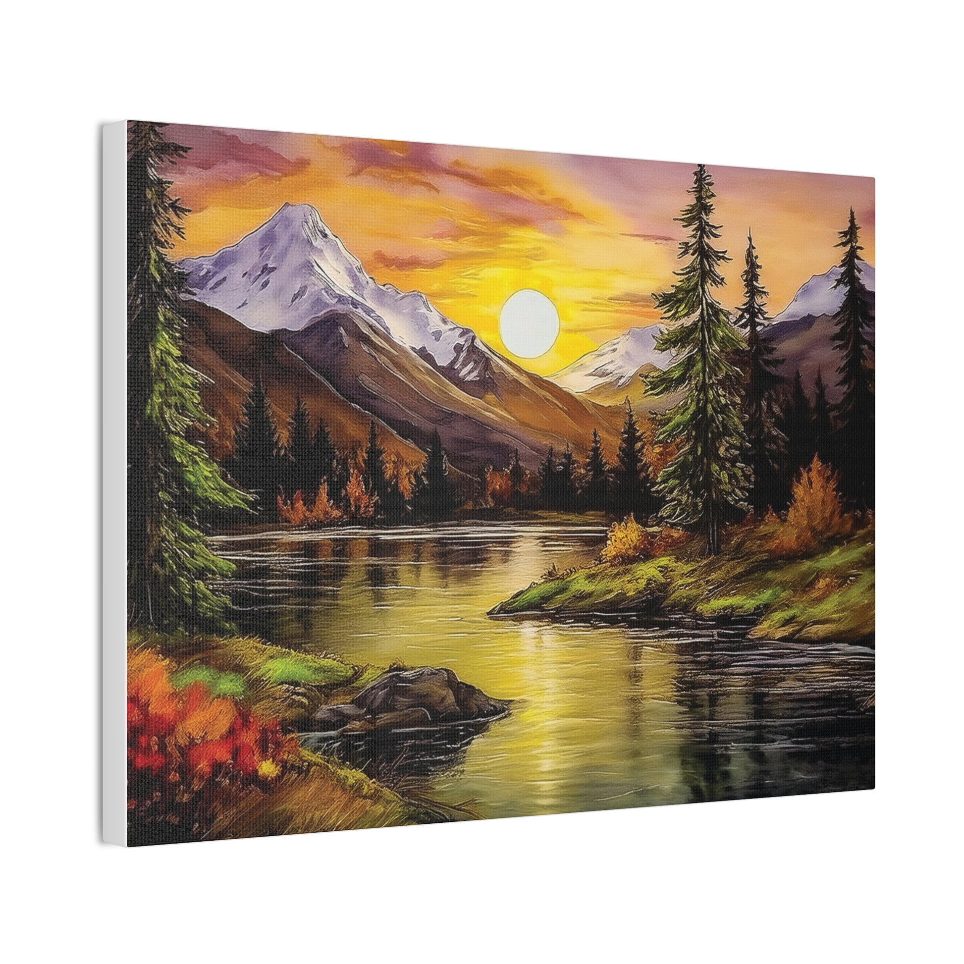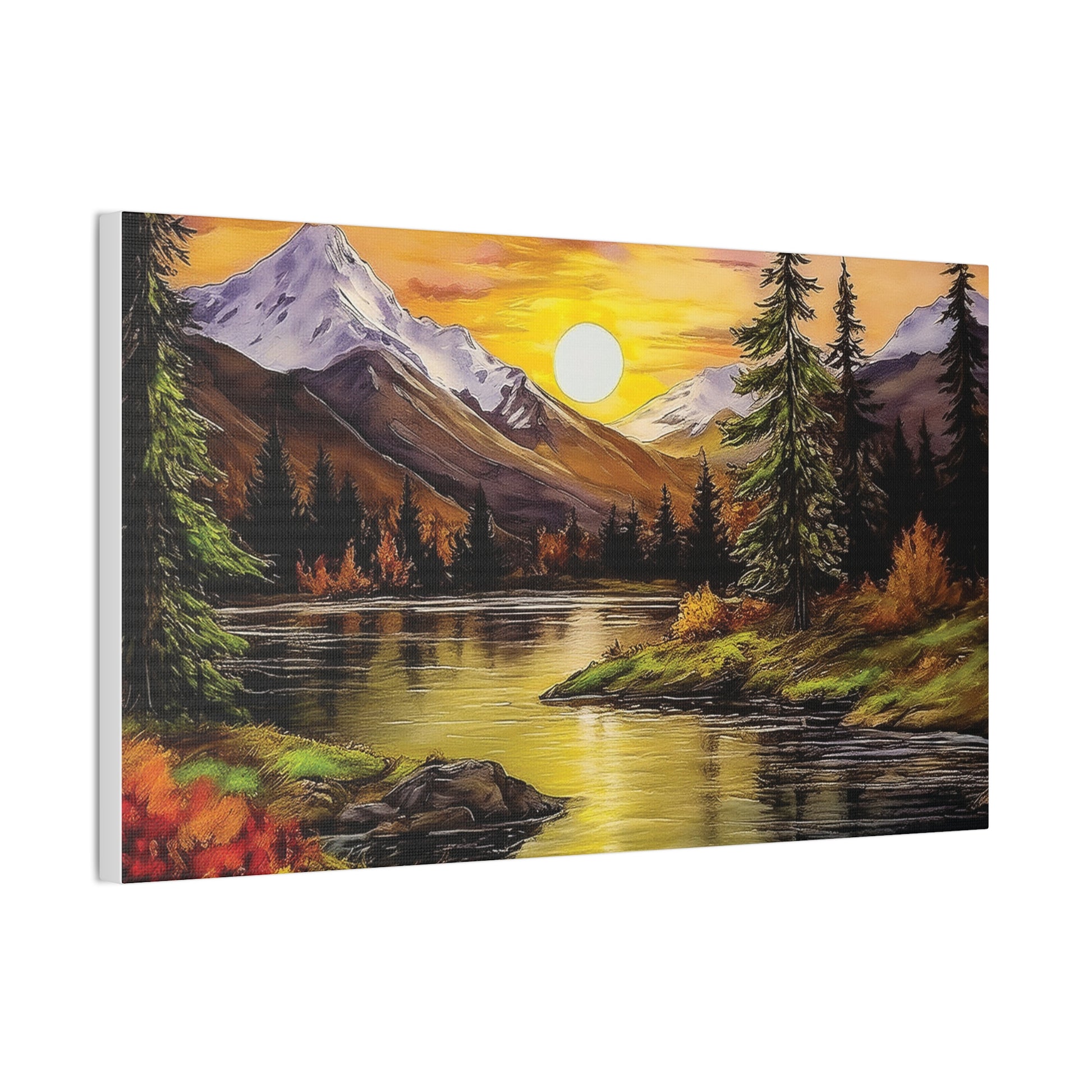 Transform your living space with this stunning canvas print. This captivating piece showcases a serene sunset scene, complete with majestic mountains and a peaceful river. Its vibrant colors bring life to any room, creating an uplifting atmosphere that invites relaxation and reflection. Perfect for nature lovers and anyone looking to enhance their home décor, this canvas print fits seamlessly into various settings—be it the living room, bedroom, or office. Ideal for holidays, housewarming gifts, or just as a special treat for yourself, it's a versatile addition that brightens up celebrations and everyday moments alike. Elevate your surroundings with art that inspires calm and connection with nature.