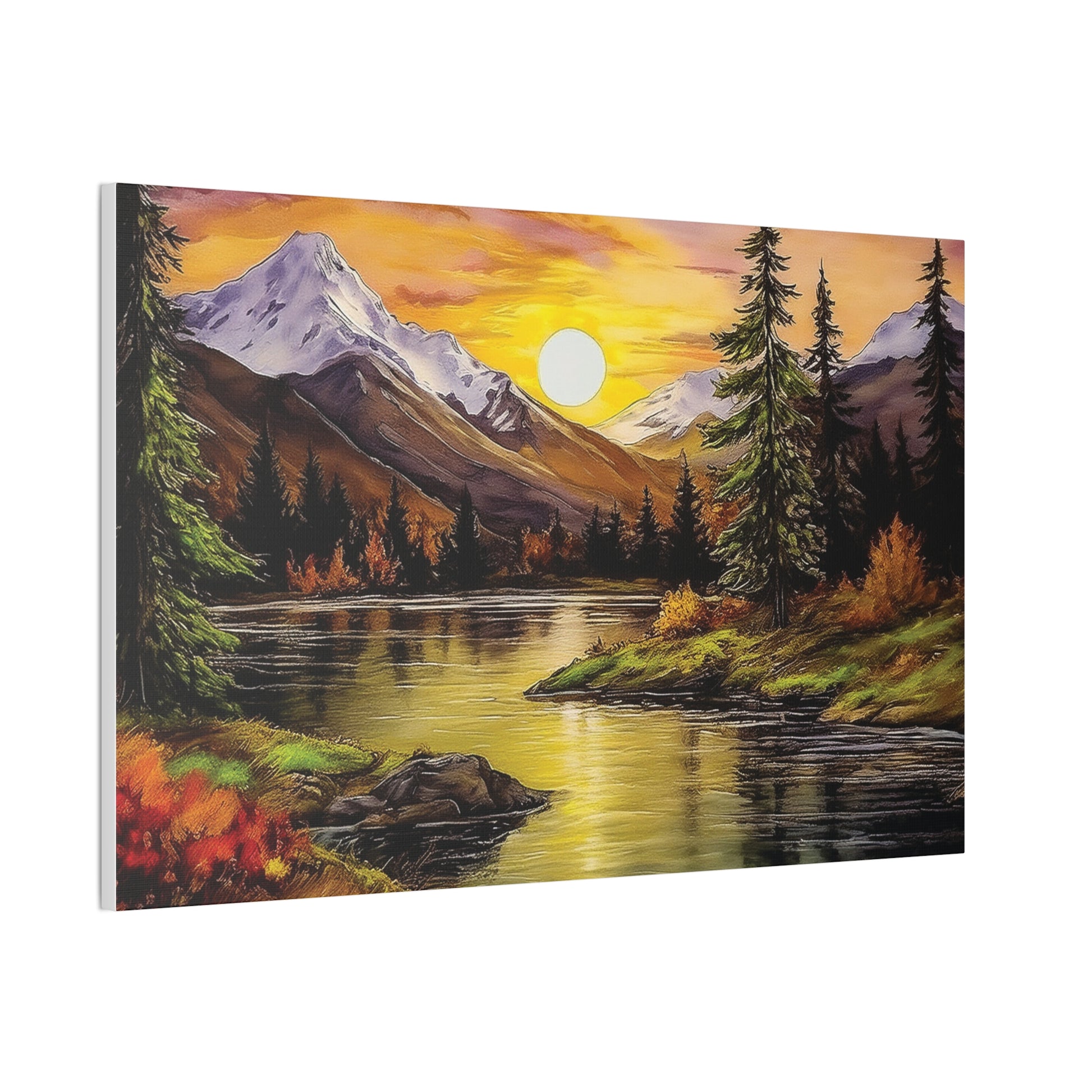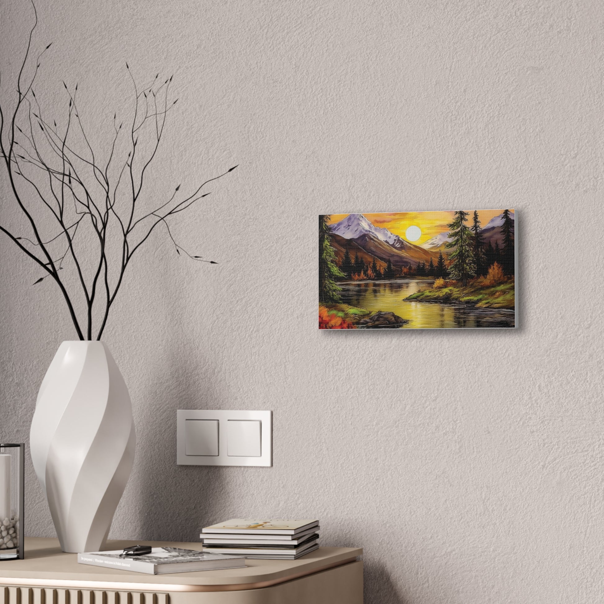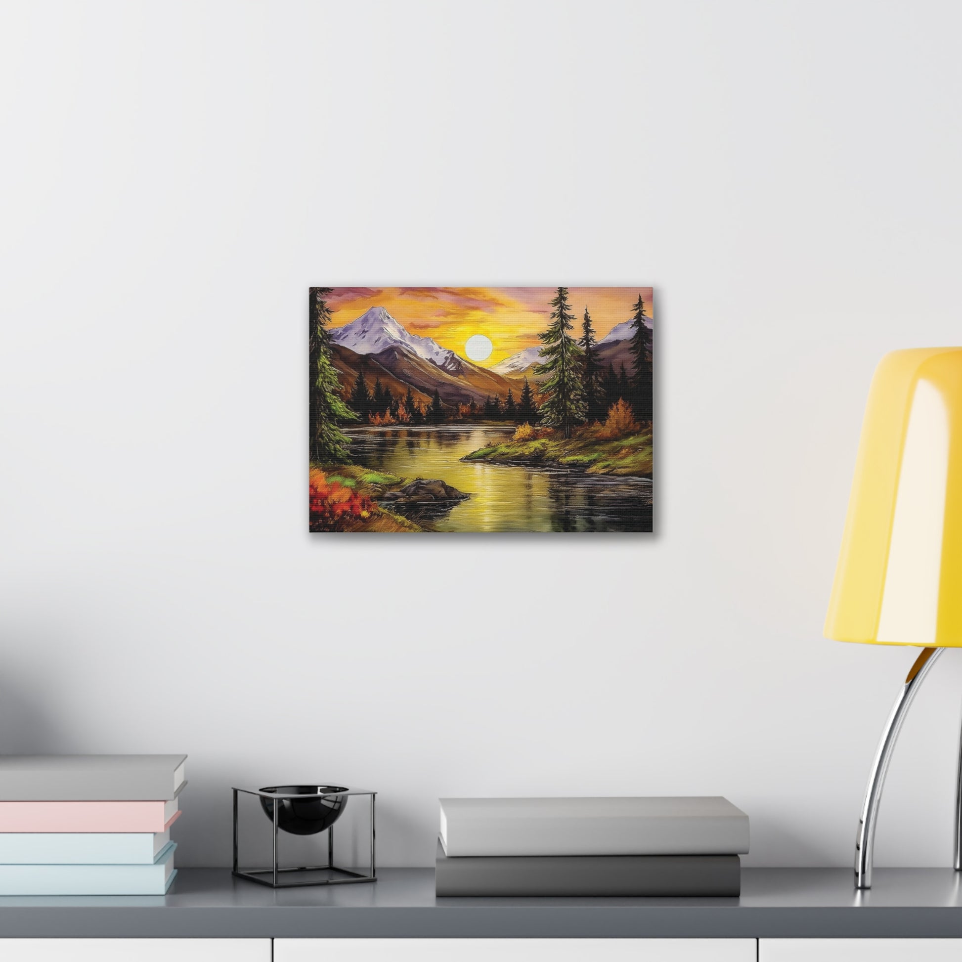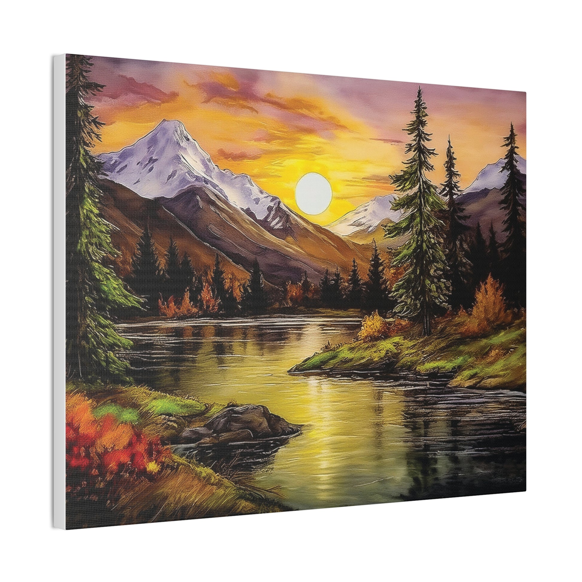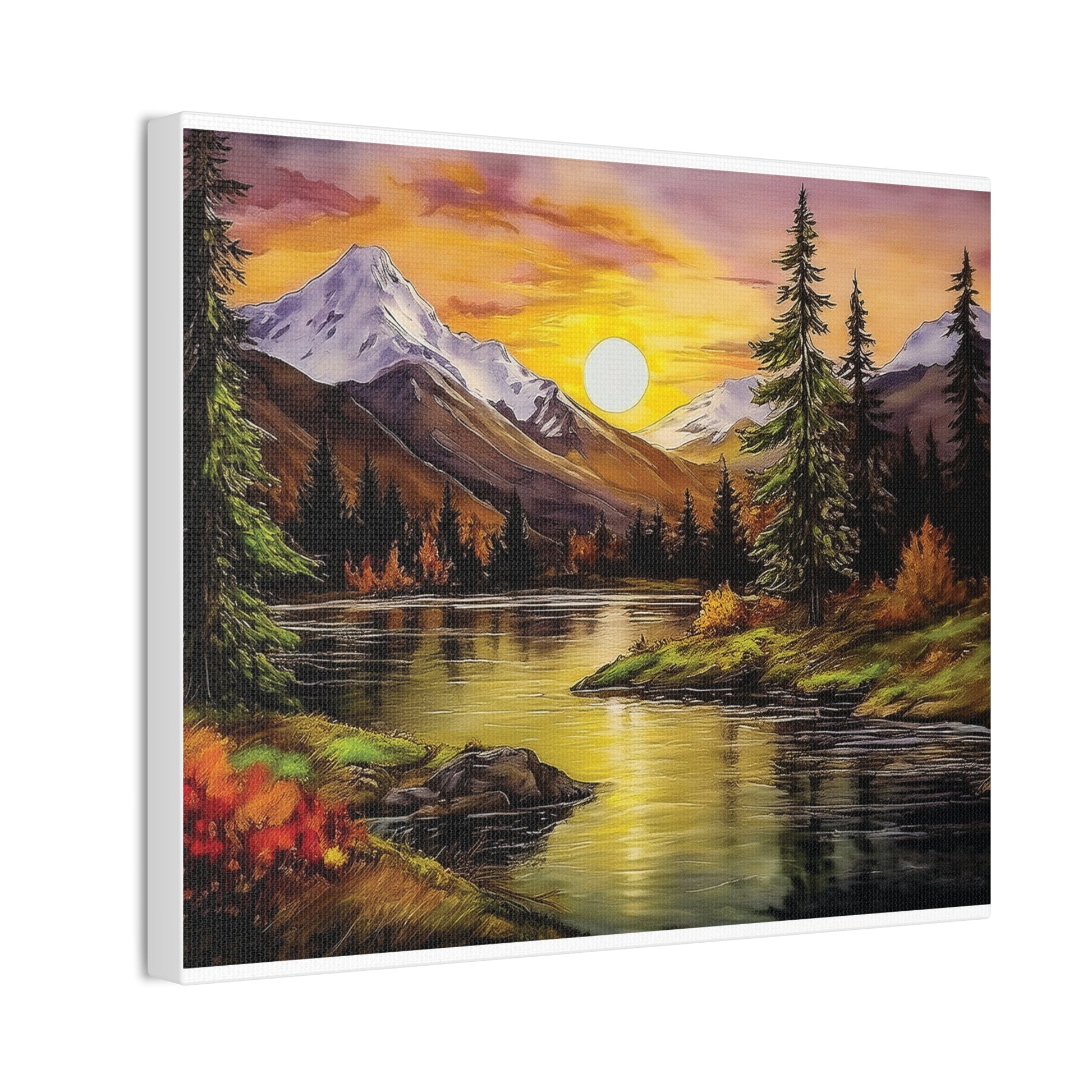 Transform your living space with this stunning canvas print. This captivating piece showcases a serene sunset scene, complete with majestic mountains and a peaceful river. Its vibrant colors bring life to any room, creating an uplifting atmosphere that invites relaxation and reflection. Perfect for nature lovers and anyone looking to enhance their home décor, this canvas print fits seamlessly into various settings—be it the living room, bedroom, or office. Ideal for holidays, housewarming gifts, or just as a special treat for yourself, it's a versatile addition that brightens up celebrations and everyday moments alike. Elevate your surroundings with art that inspires calm and connection with nature.