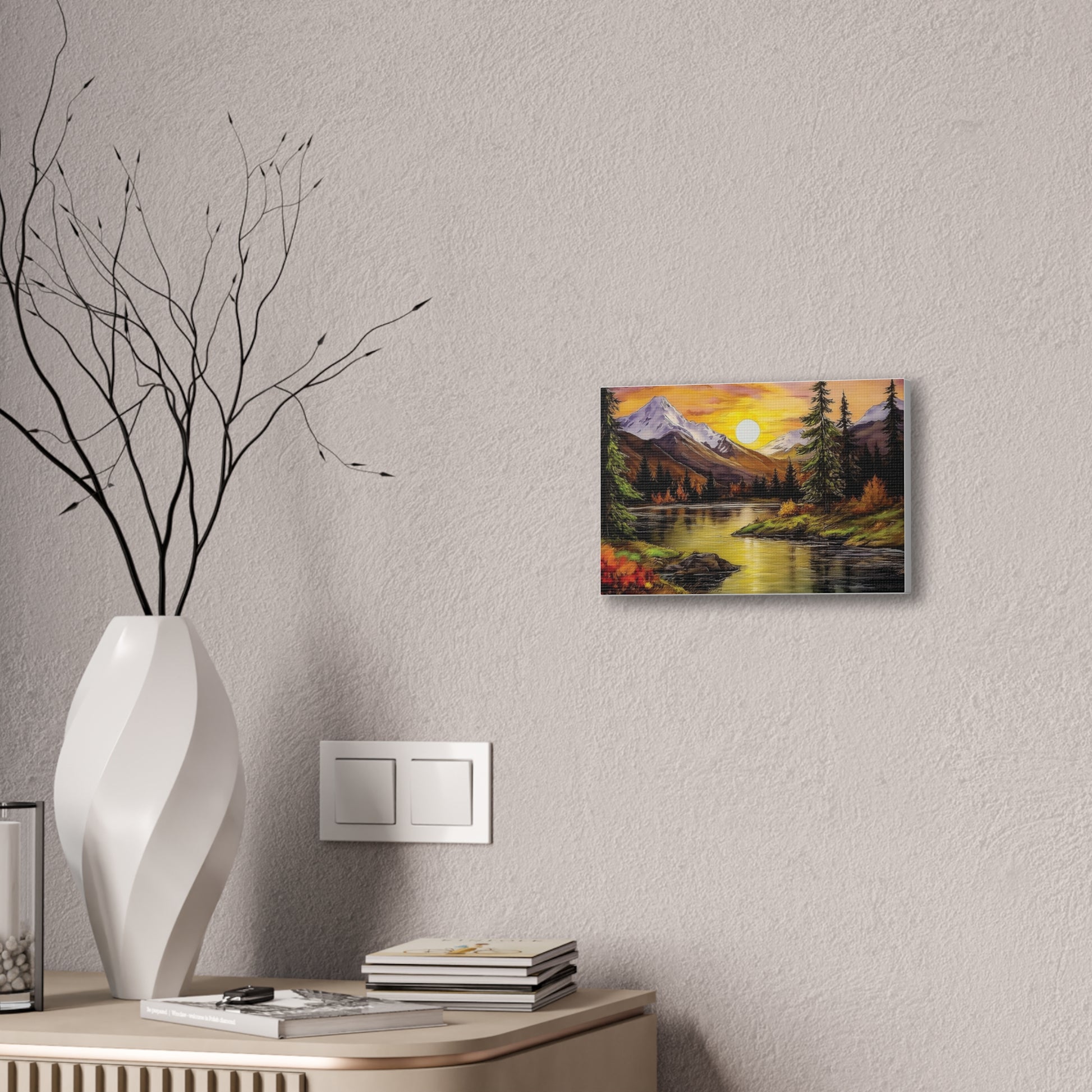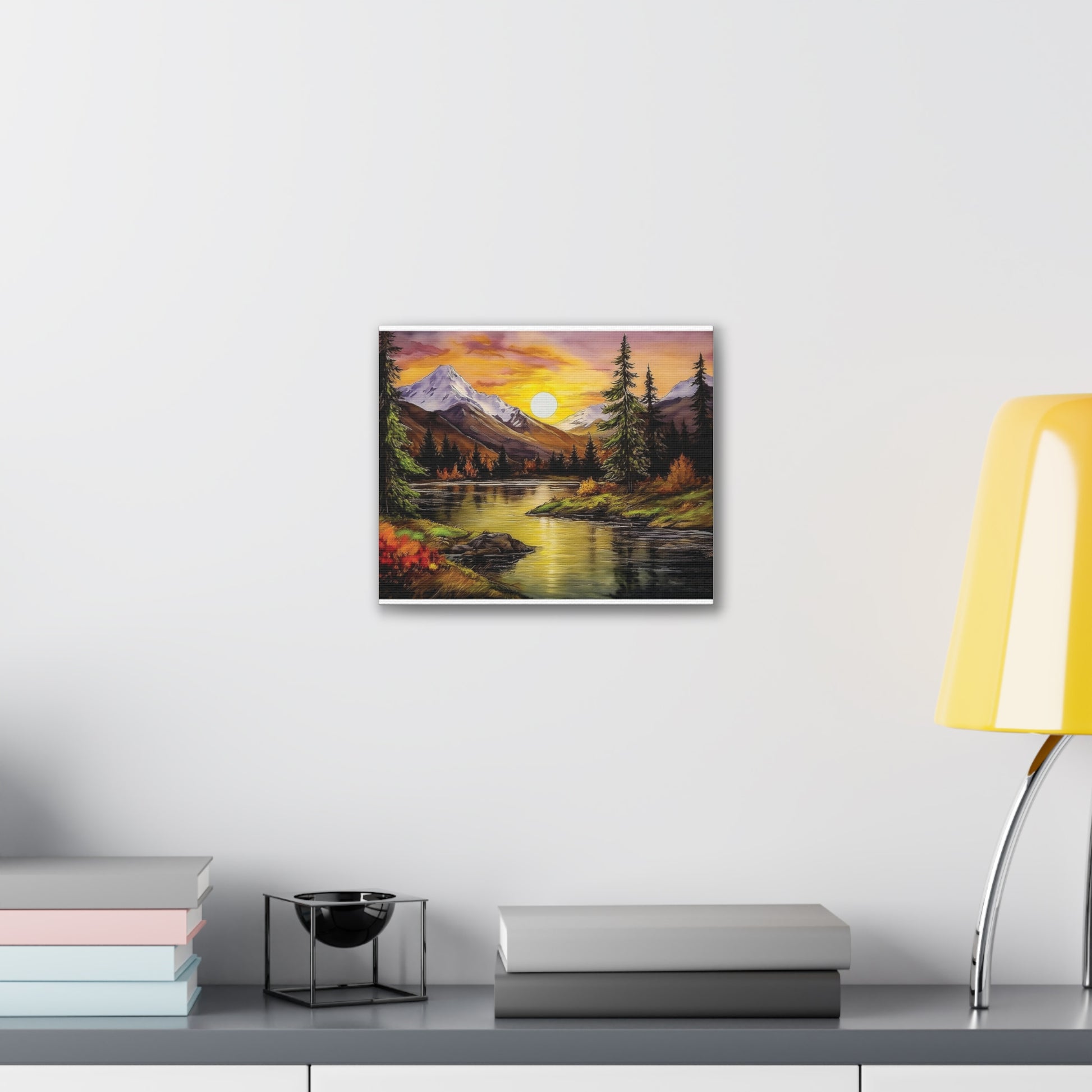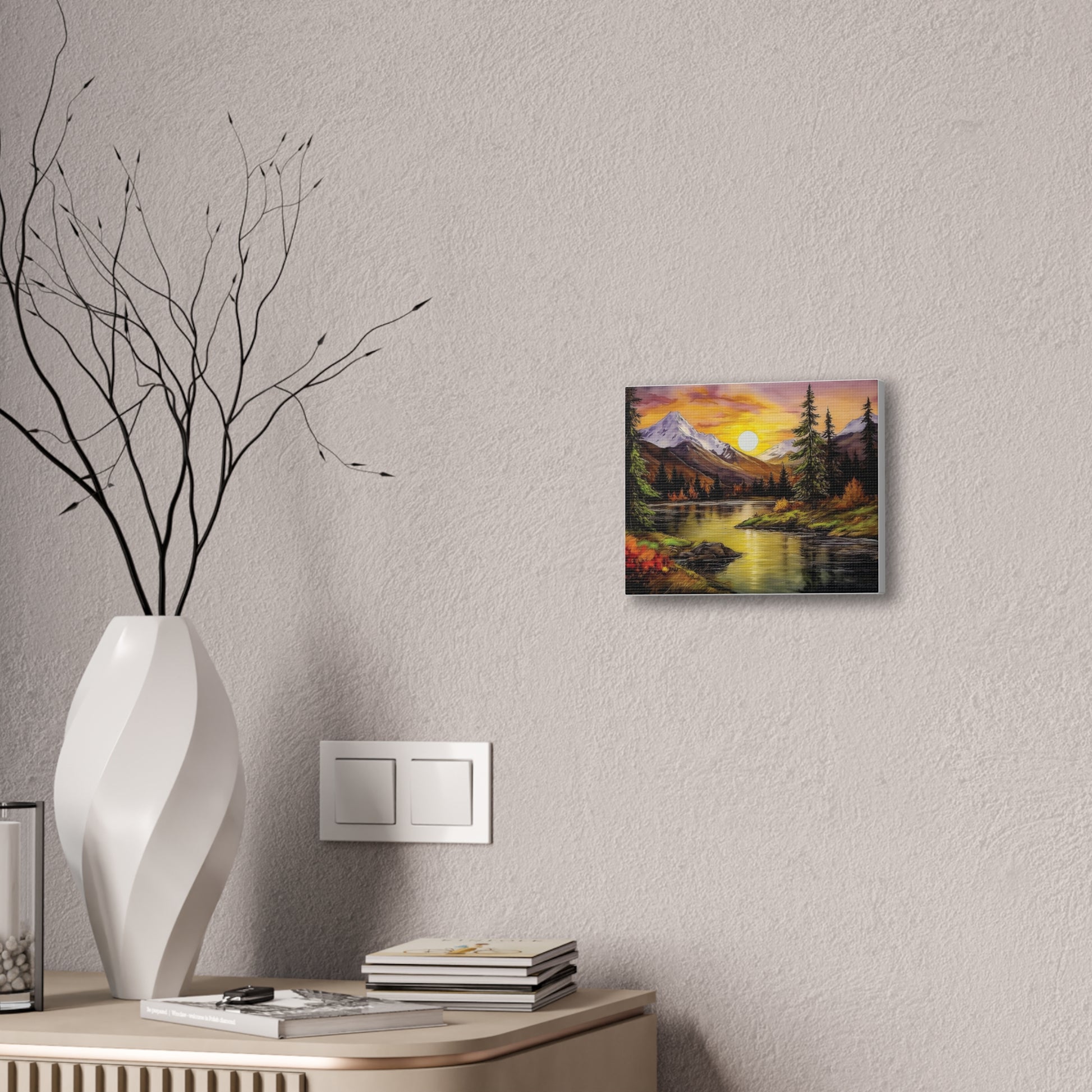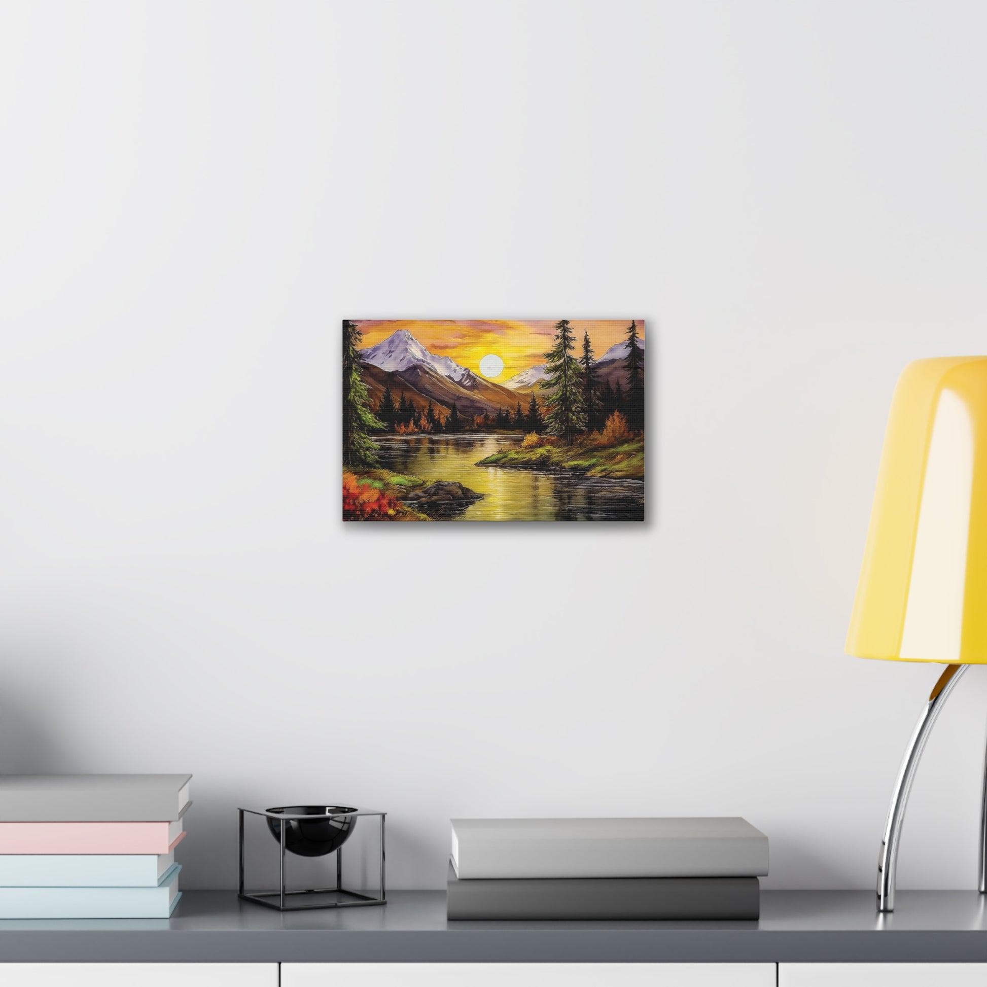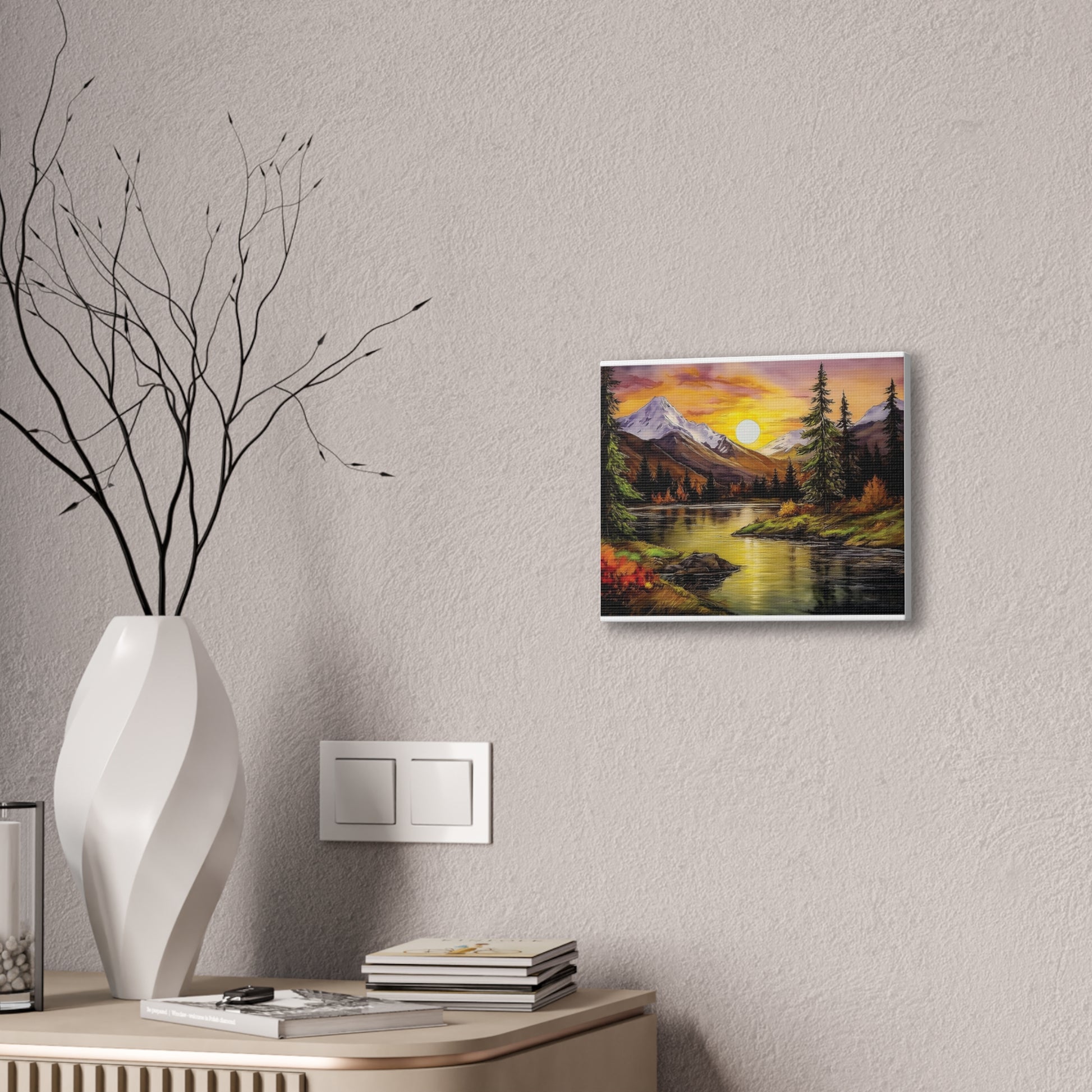Transform your living space with this stunning canvas print. This captivating piece showcases a serene sunset scene, complete with majestic mountains and a peaceful river. Its vibrant colors bring life to any room, creating an uplifting atmosphere that invites relaxation and reflection. Perfect for nature lovers and anyone looking to enhance their home décor, this canvas print fits seamlessly into various settings—be it the living room, bedroom, or office. Ideal for holidays, housewarming gifts, or just as a special treat for yourself, it's a versatile addition that brightens up celebrations and everyday moments alike. Elevate your surroundings with art that inspires calm and connection with nature.