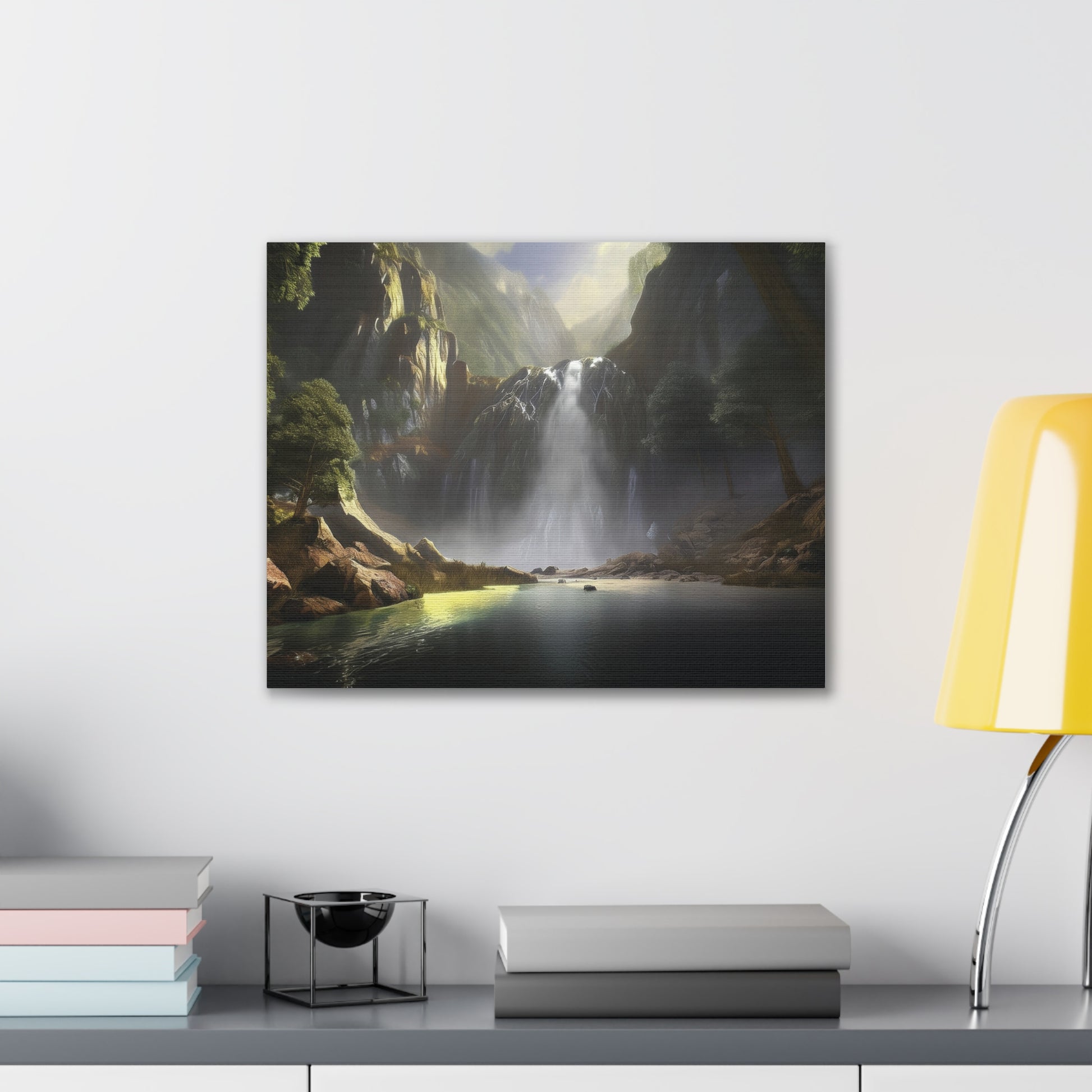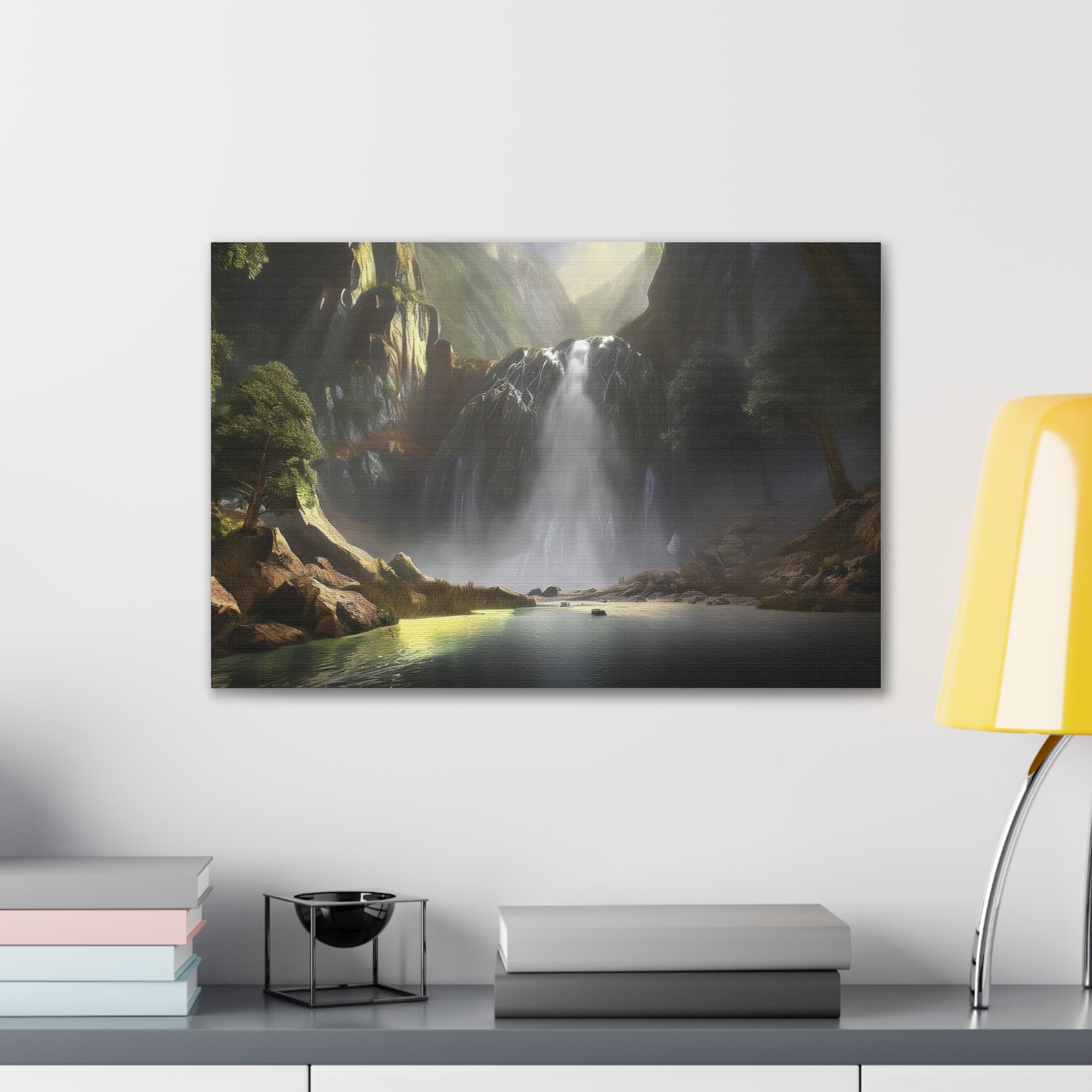 Serene Waterfall Canvas Print, Nature Wall Art, Home Décor, Gift for Nature Lovers, Living Room Artwork, Modern Landscape