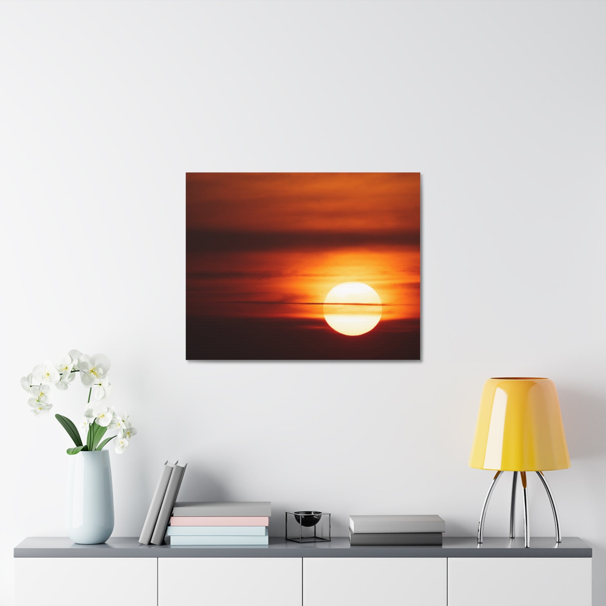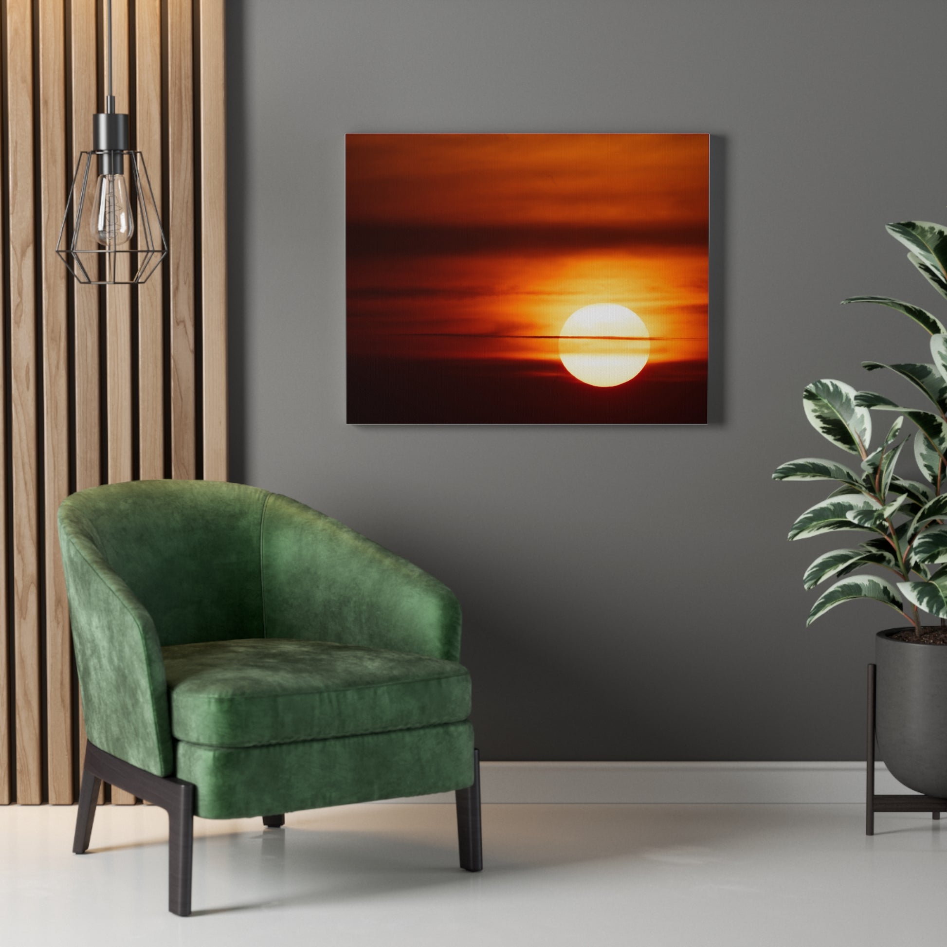 Bring the beauty of a golden sunset into your home with this stunning canvas. The image of a full round sun will create a warm and serene atmosphere, perfect for relaxation or introspection. Ideal for nature lovers, sunset enthusiasts, and those seeking a peaceful ambiance in their living space. Perfect for home decor, gifting on birthdays, housewarmings, or anniversaries.