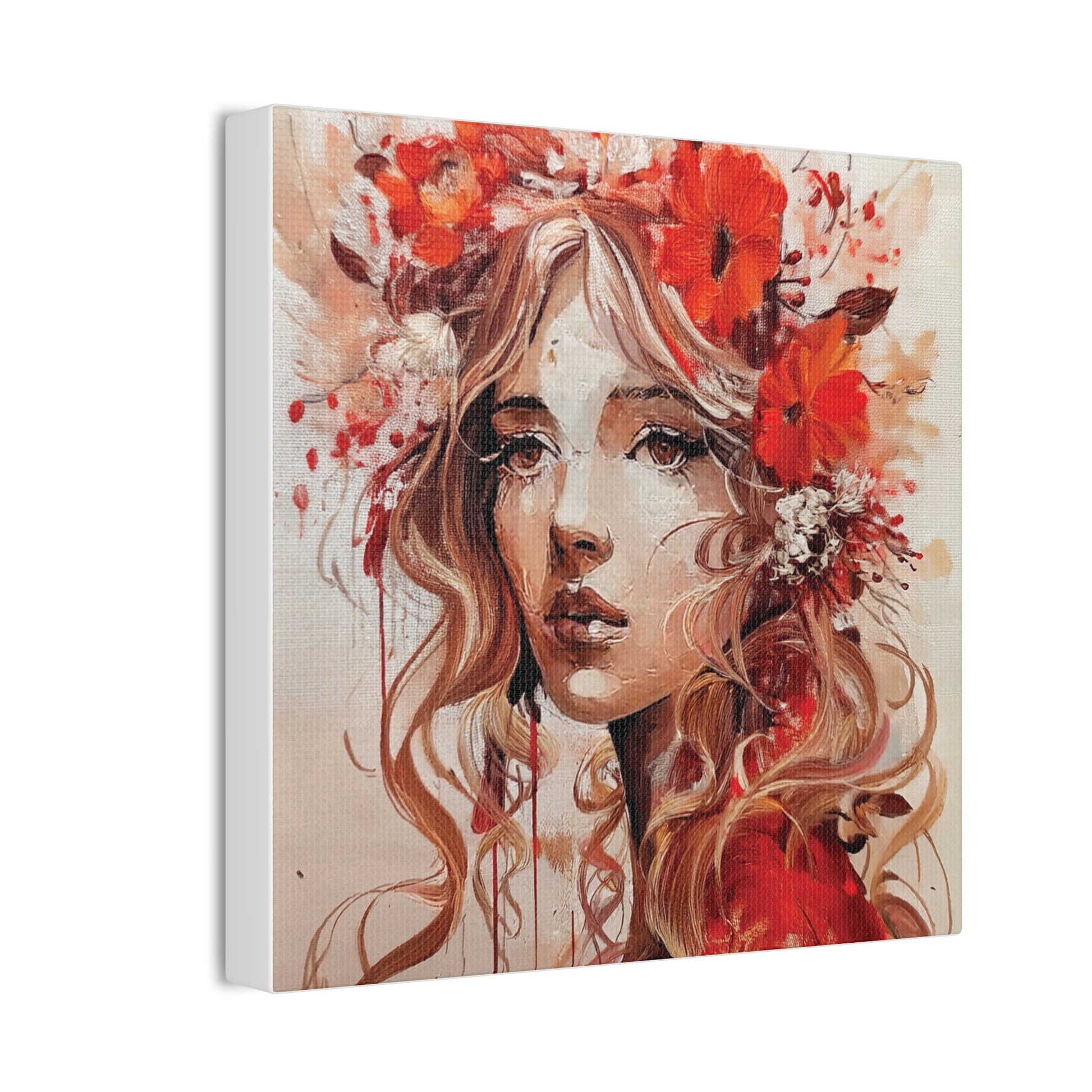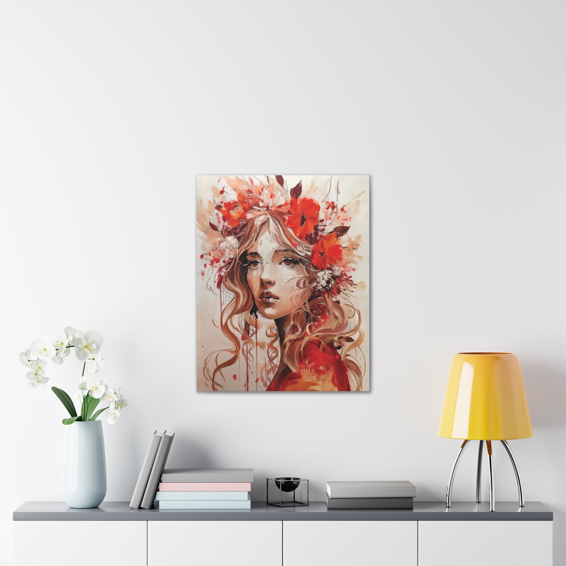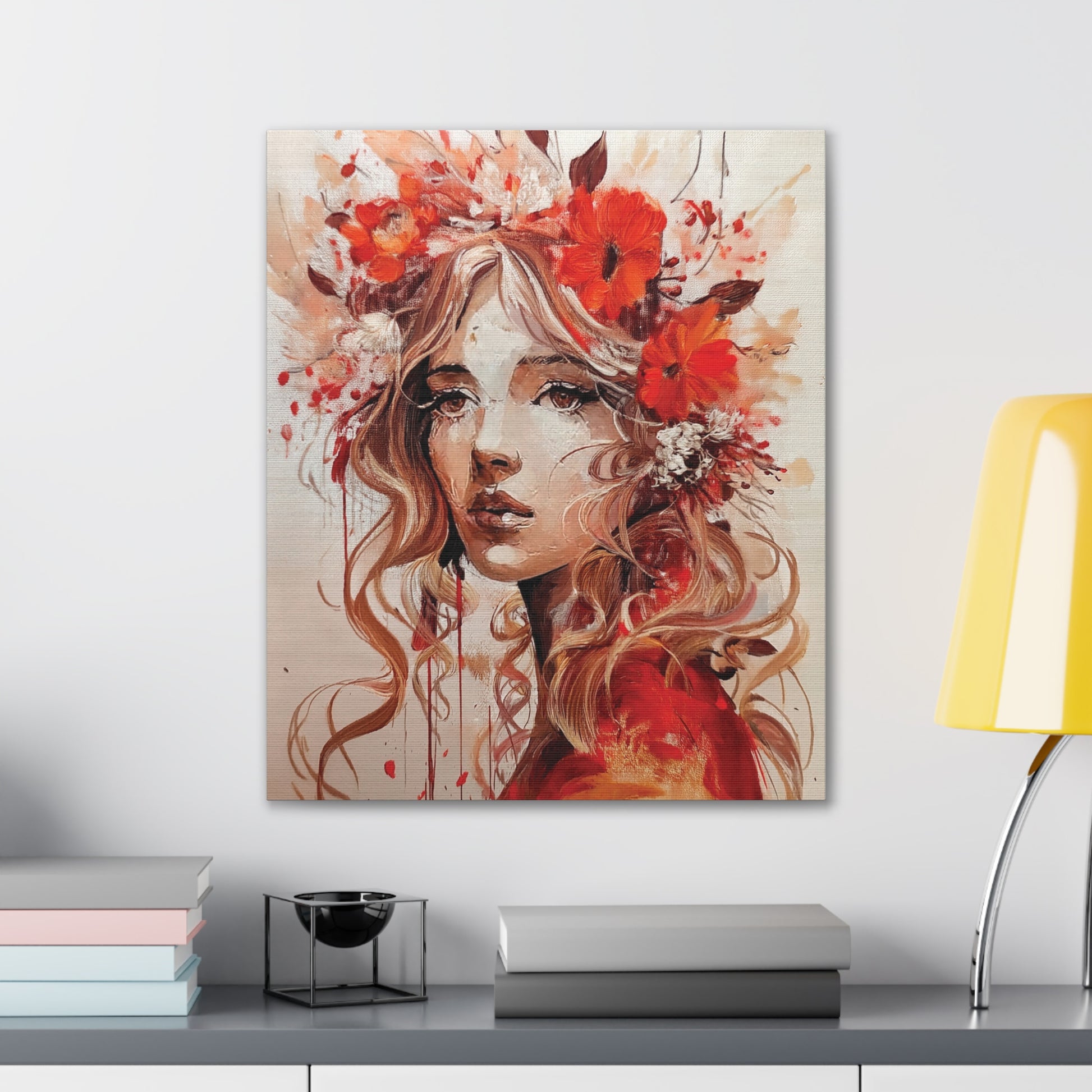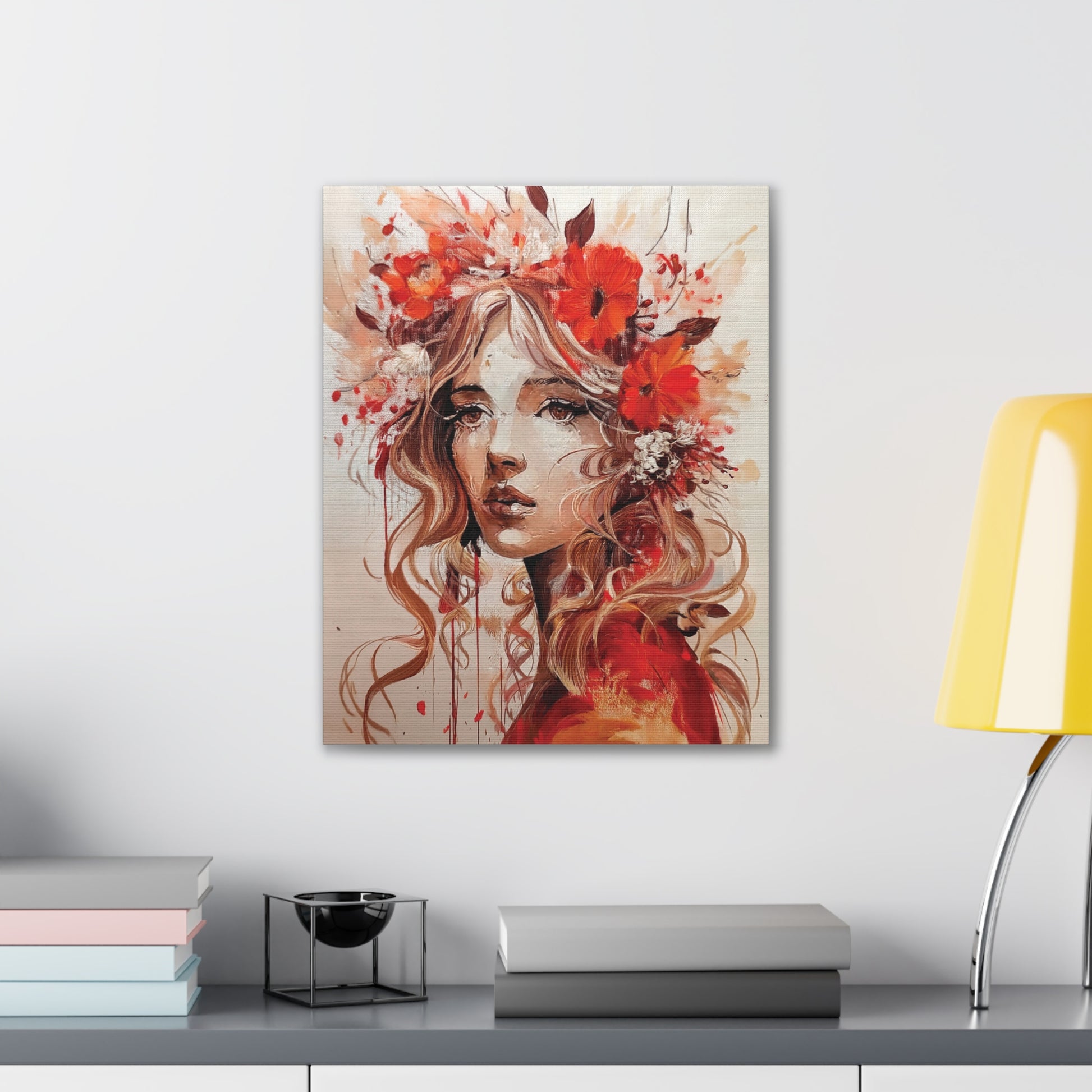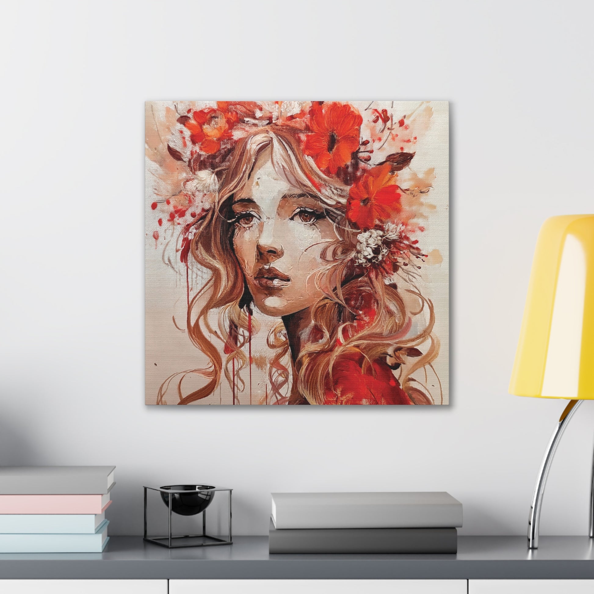 Stretched Canvas Art Print - Floral Portrait, Home Decor, Gift, Wall Art, Boho Style, Art for Living Room, Unique Gift Idea