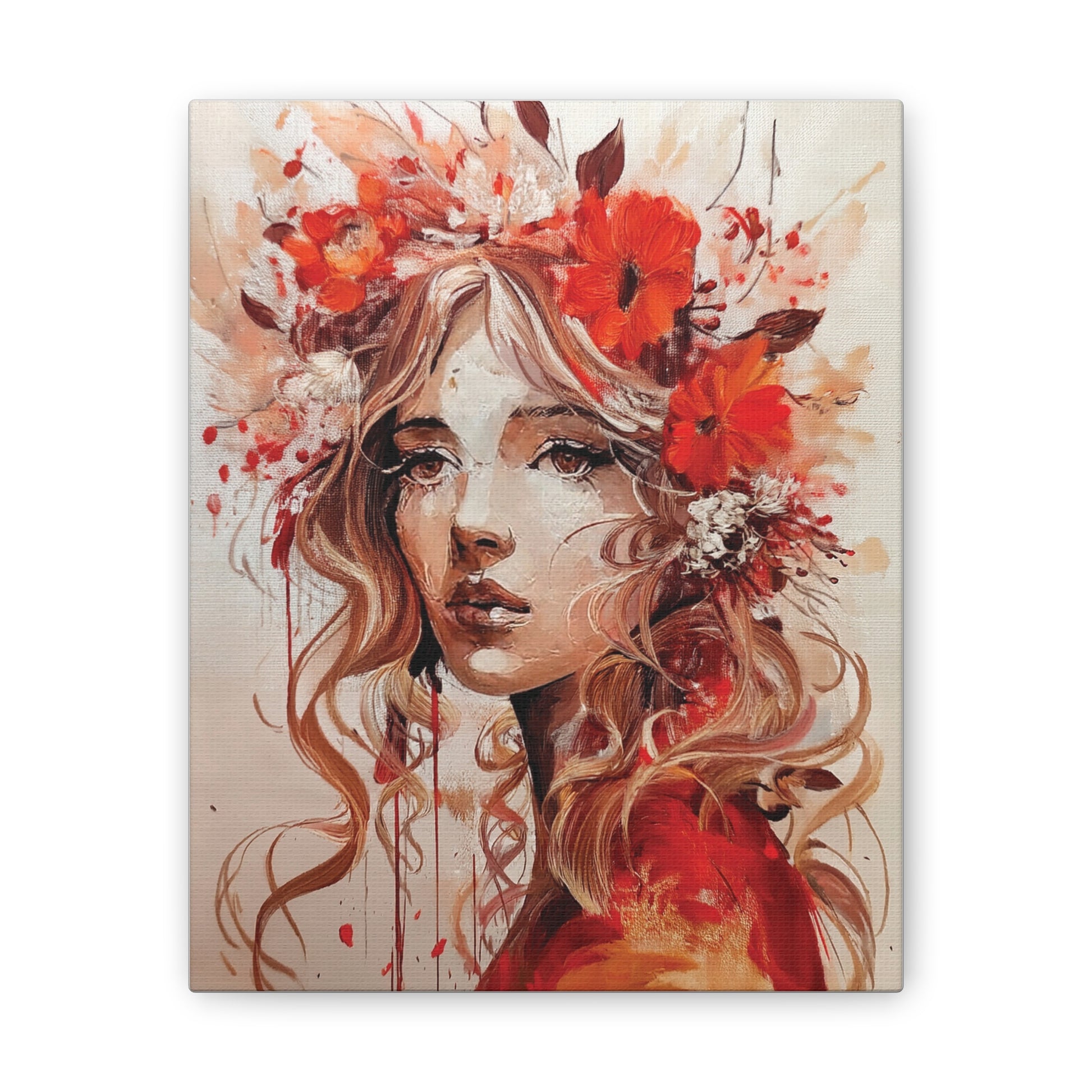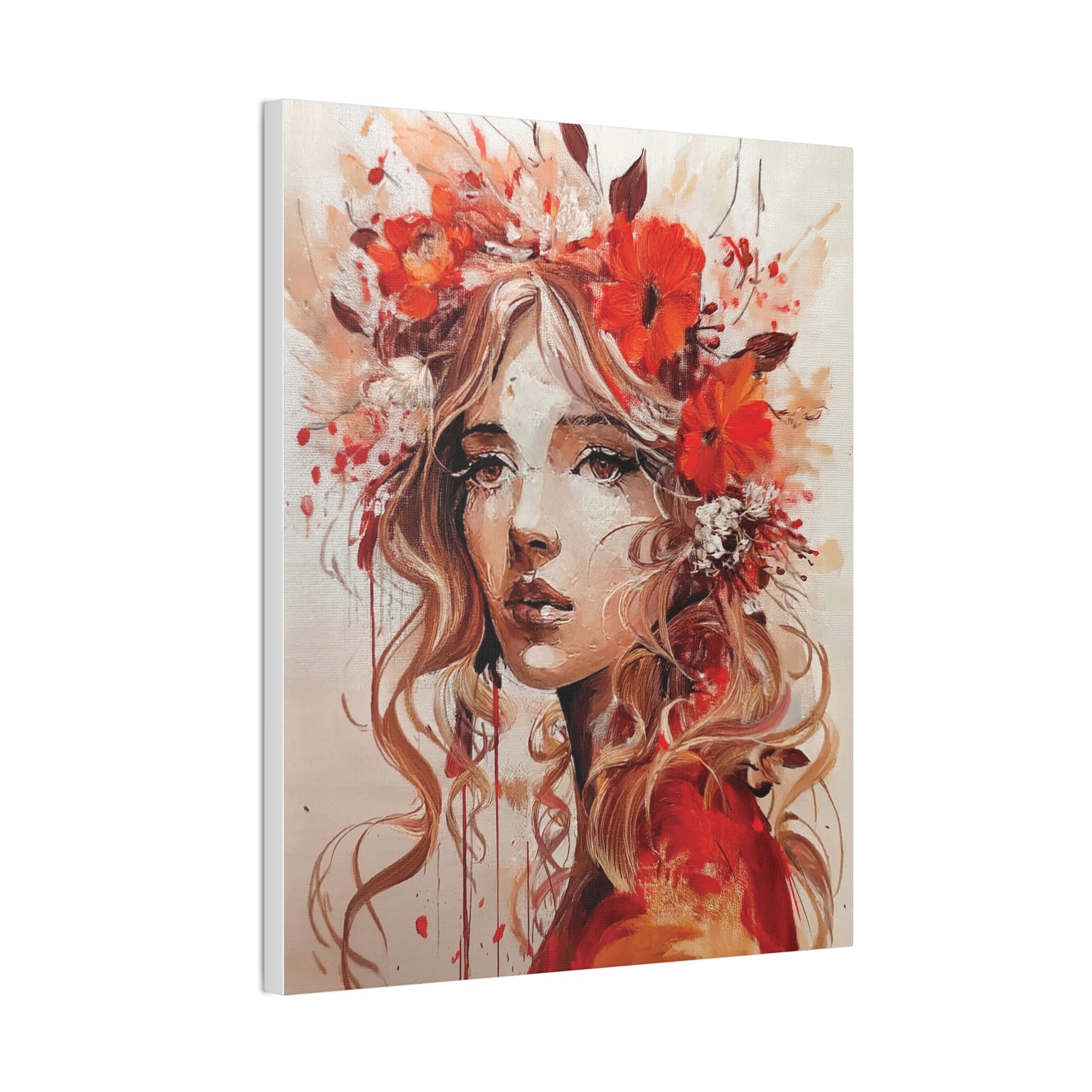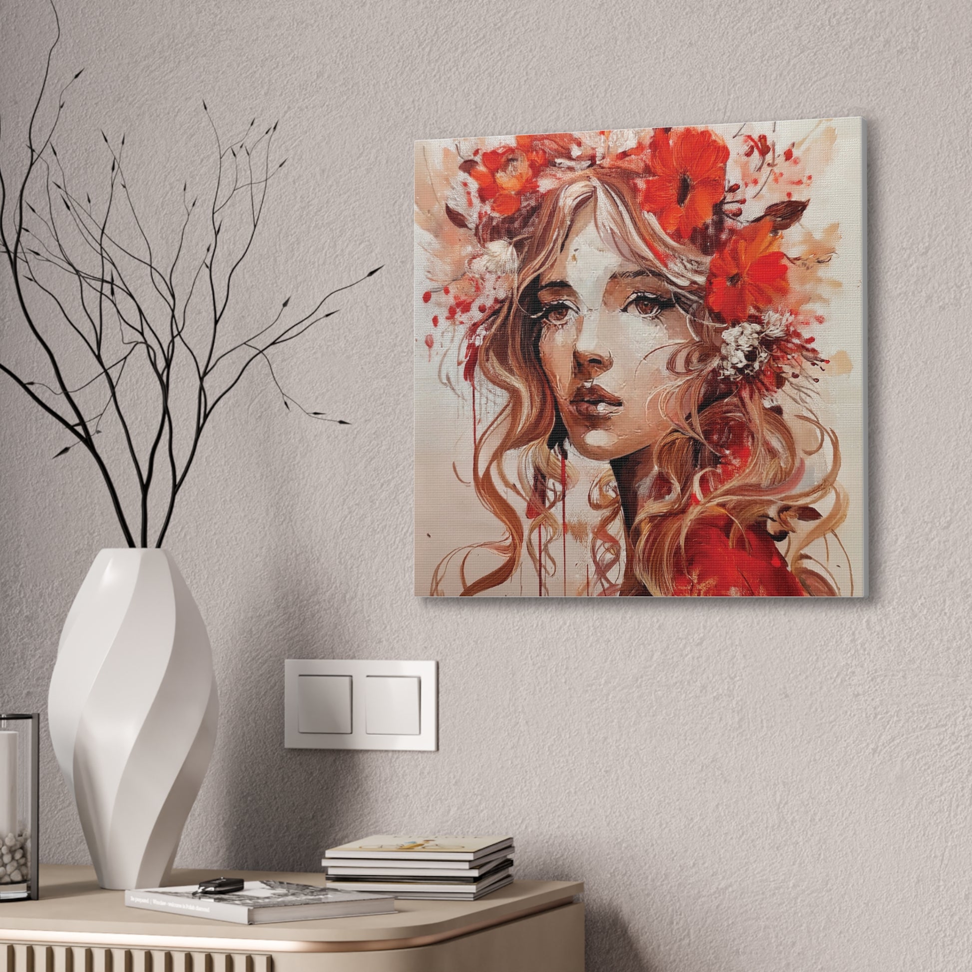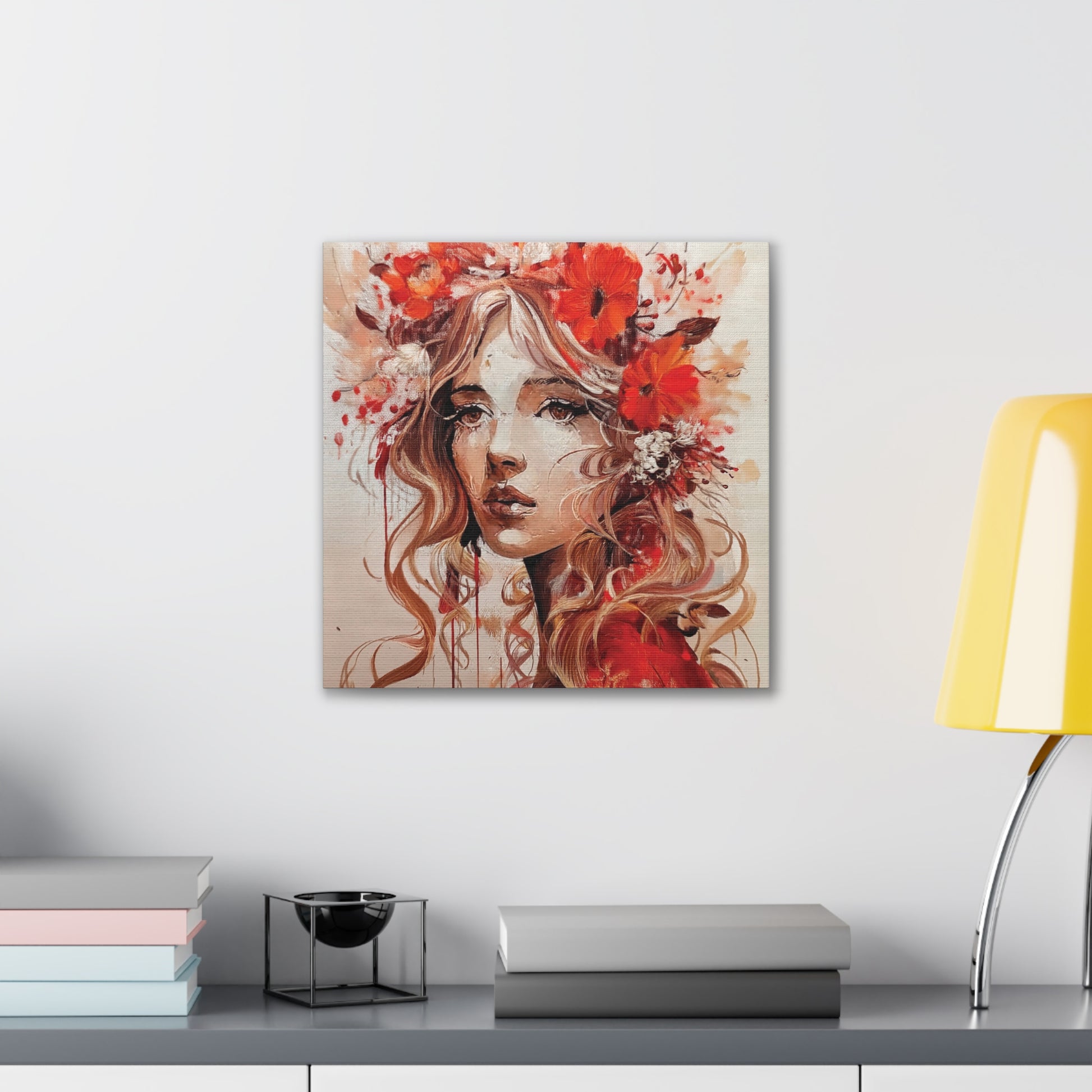 Stretched Canvas Art Print - Floral Portrait, Home Decor, Gift, Wall Art, Boho Style, Art for Living Room, Unique Gift Idea