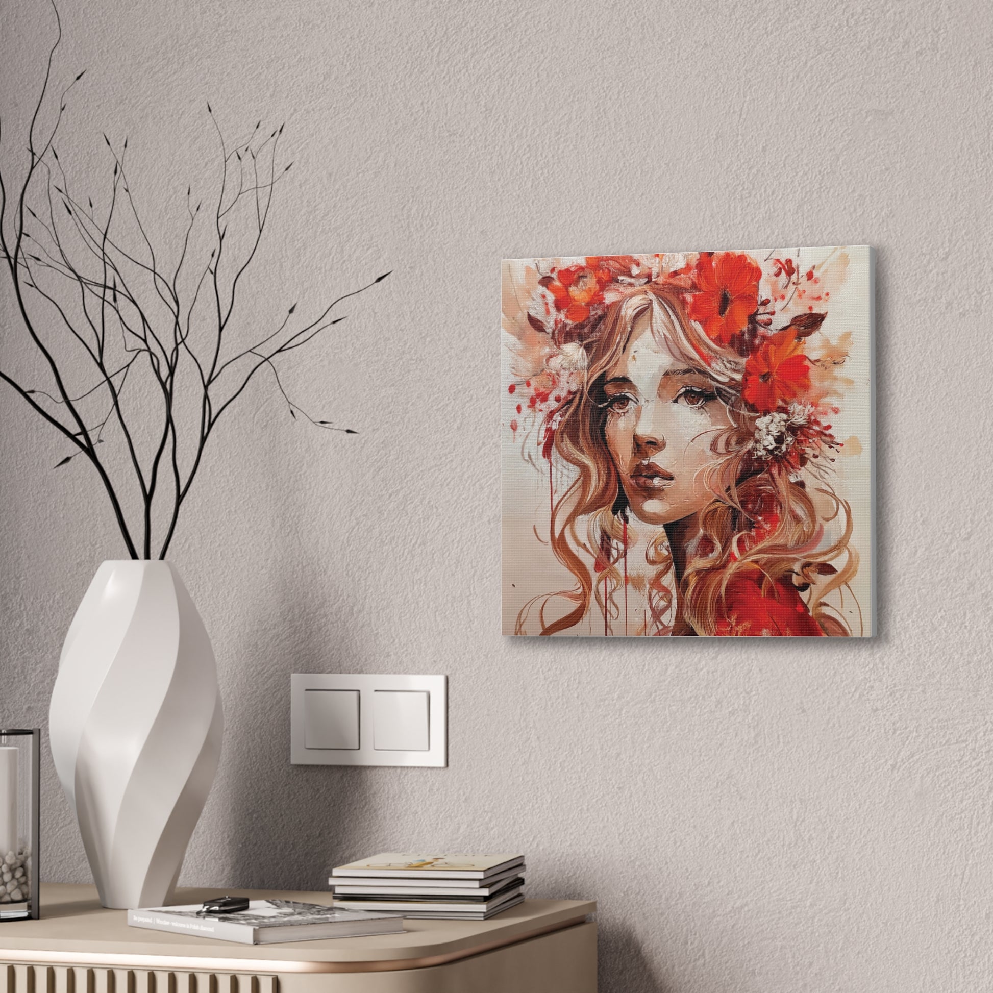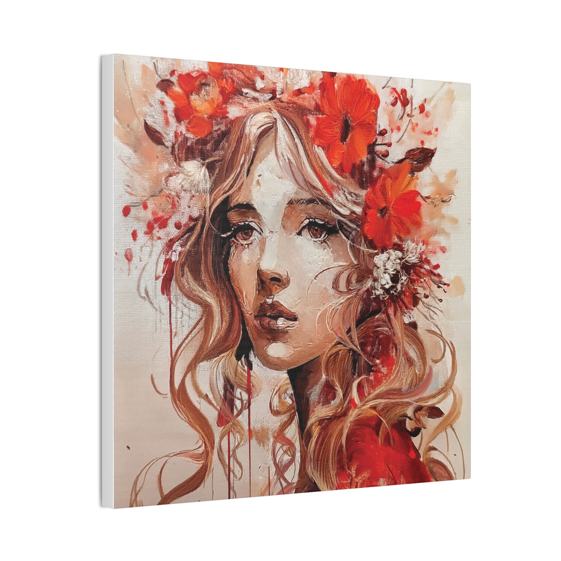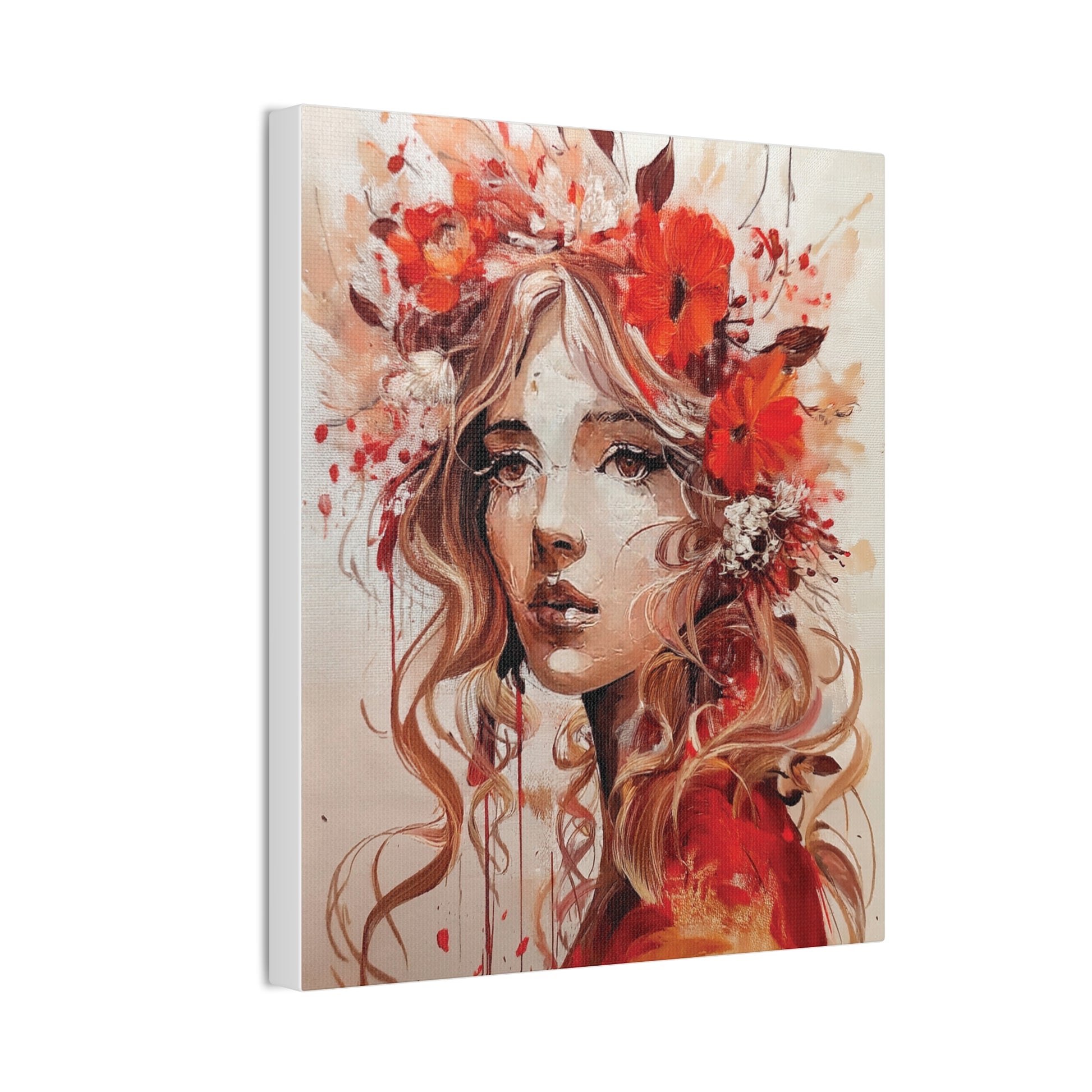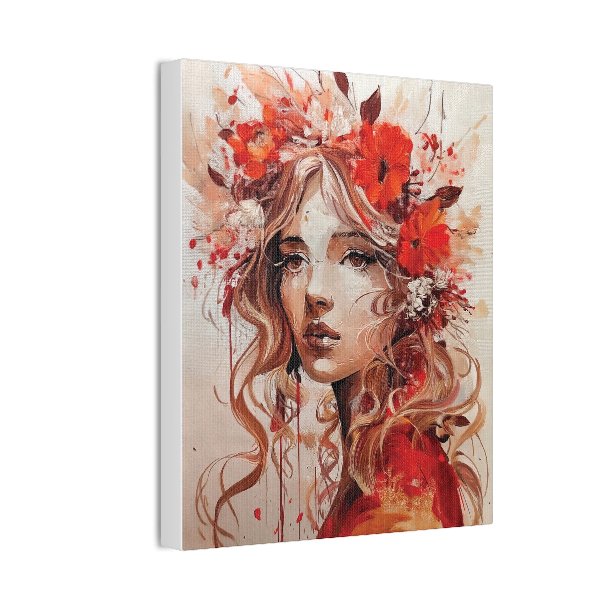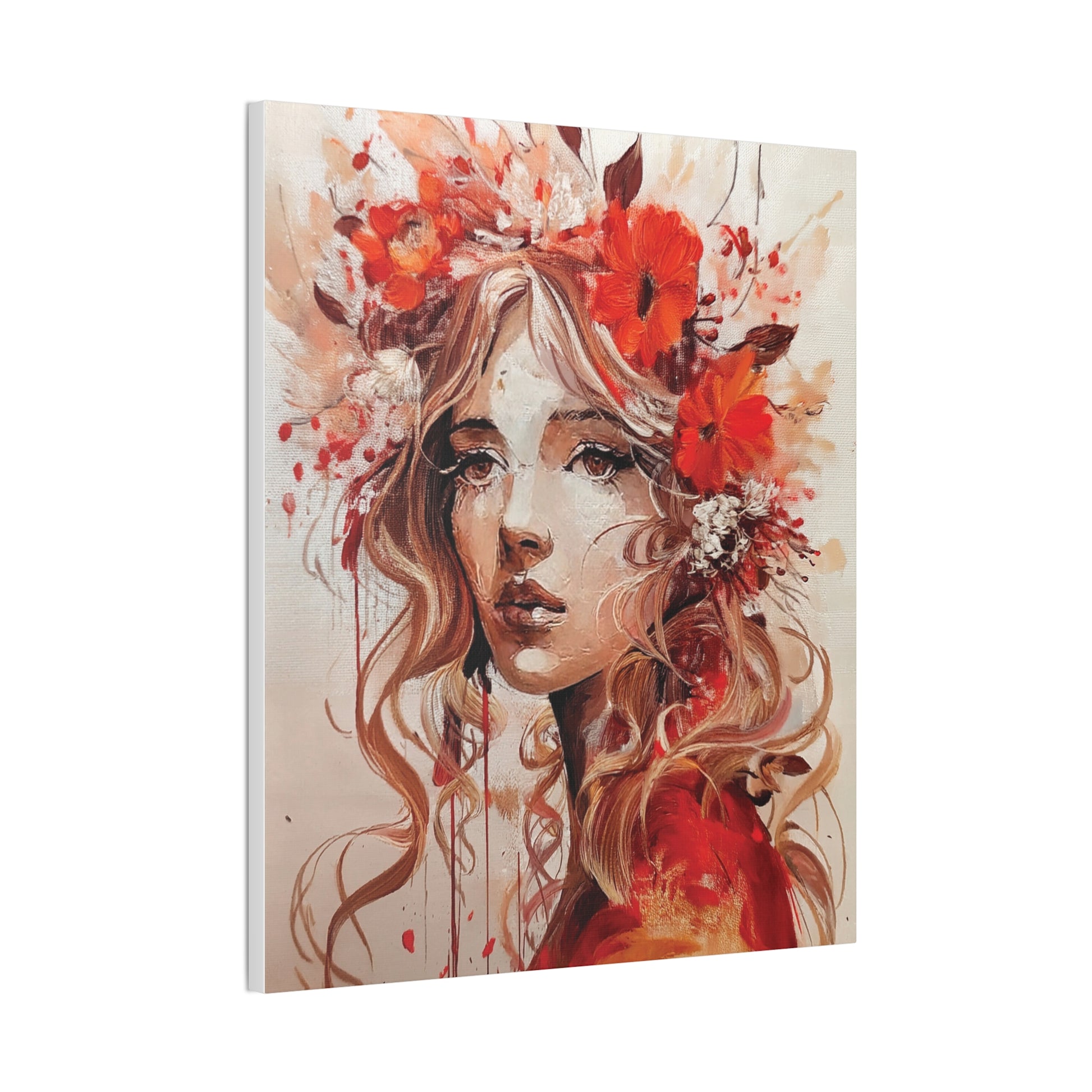 Stretched Canvas Art Print - Floral Portrait, Home Decor, Gift, Wall Art, Boho Style, Art for Living Room, Unique Gift Idea