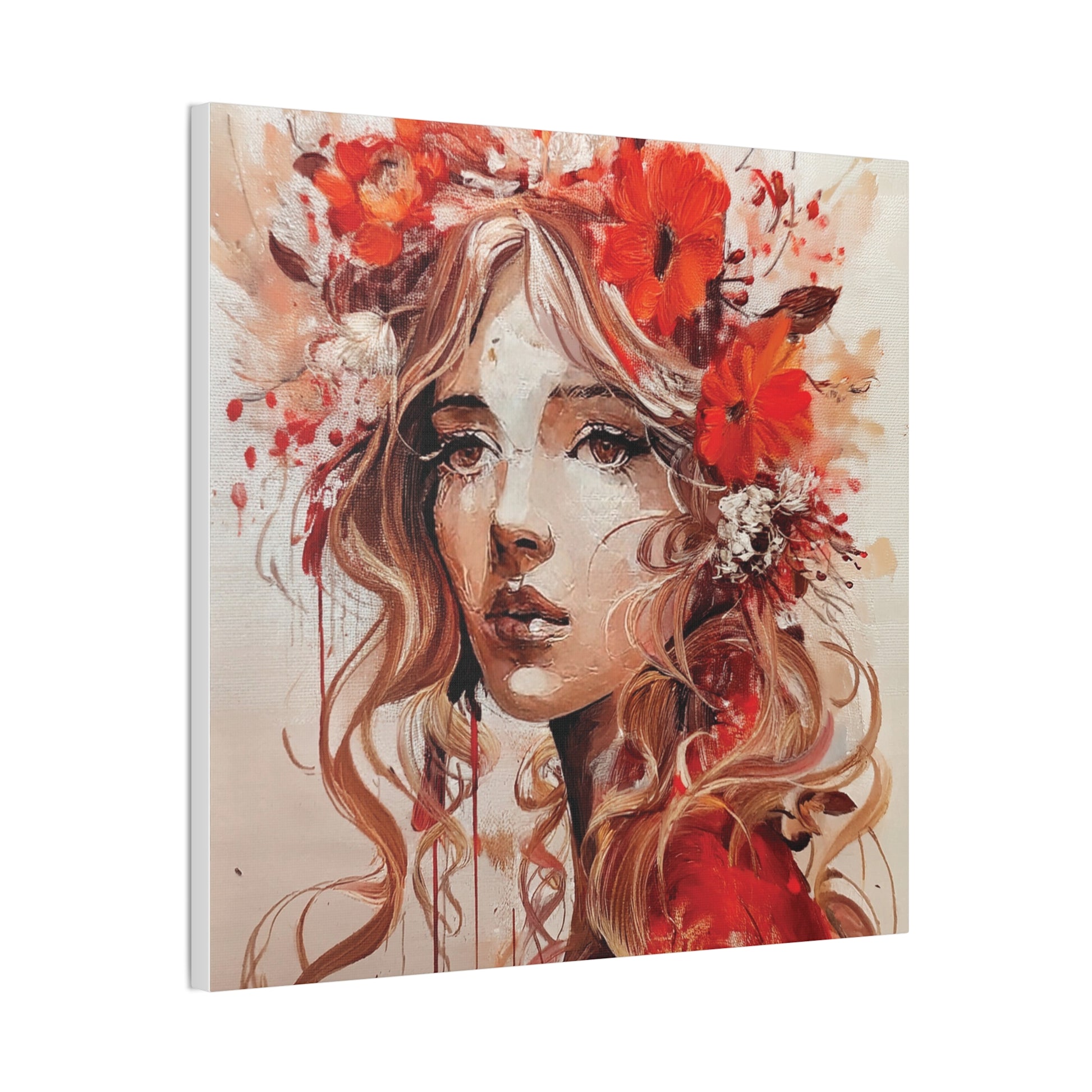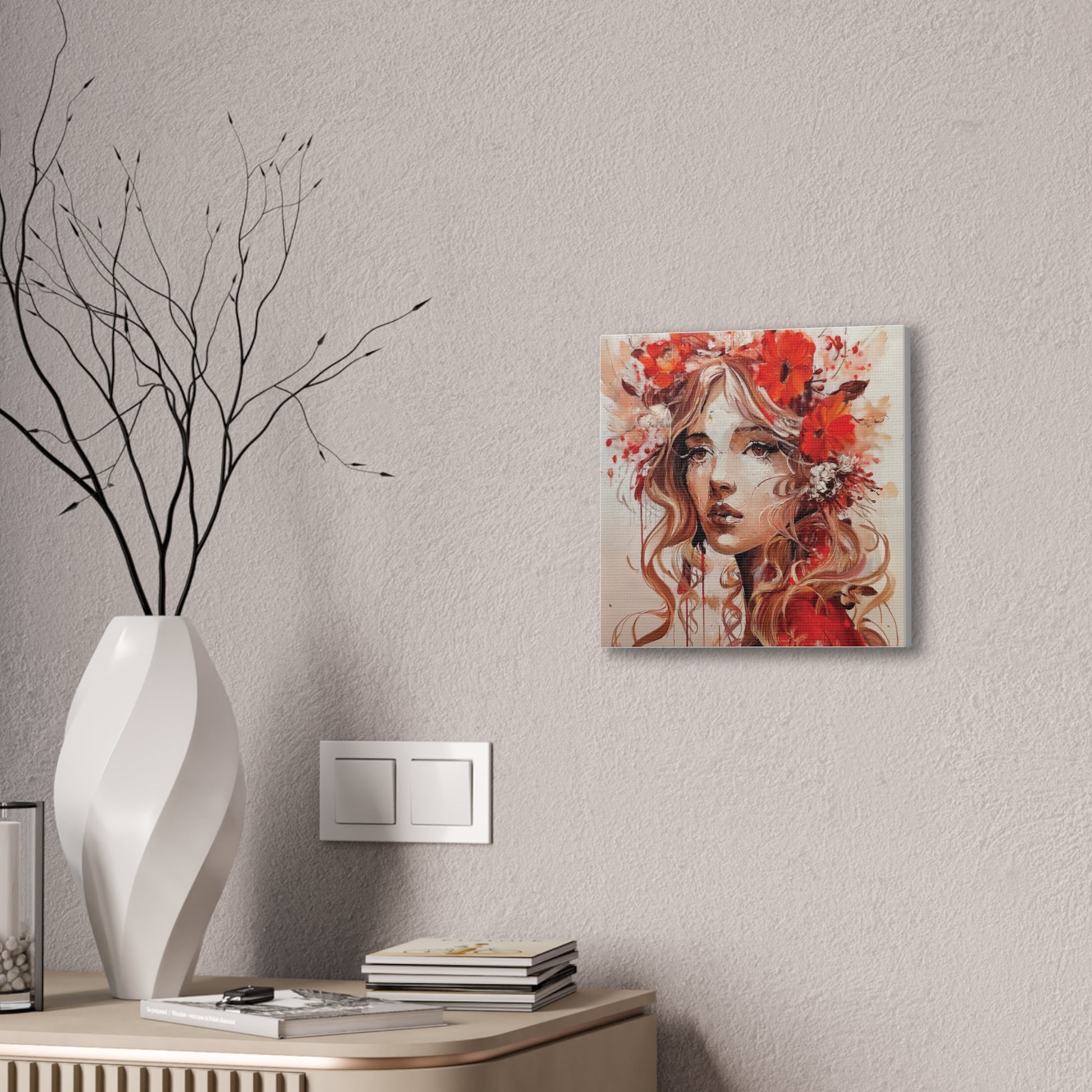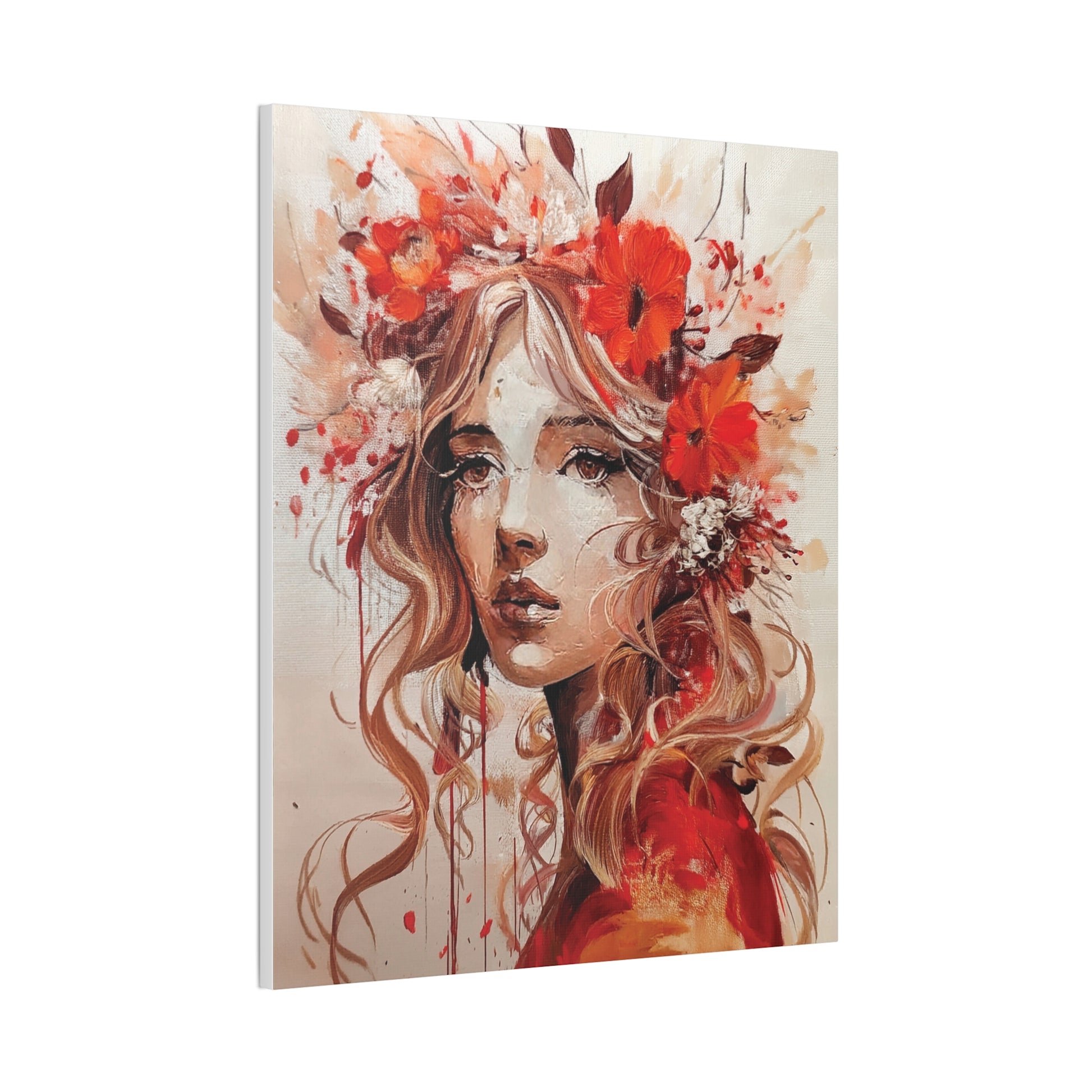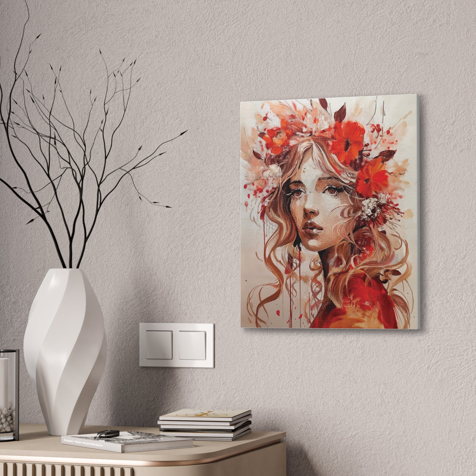 Stretched Canvas Art Print - Floral Portrait, Home Decor, Gift, Wall Art, Boho Style, Art for Living Room, Unique Gift Idea