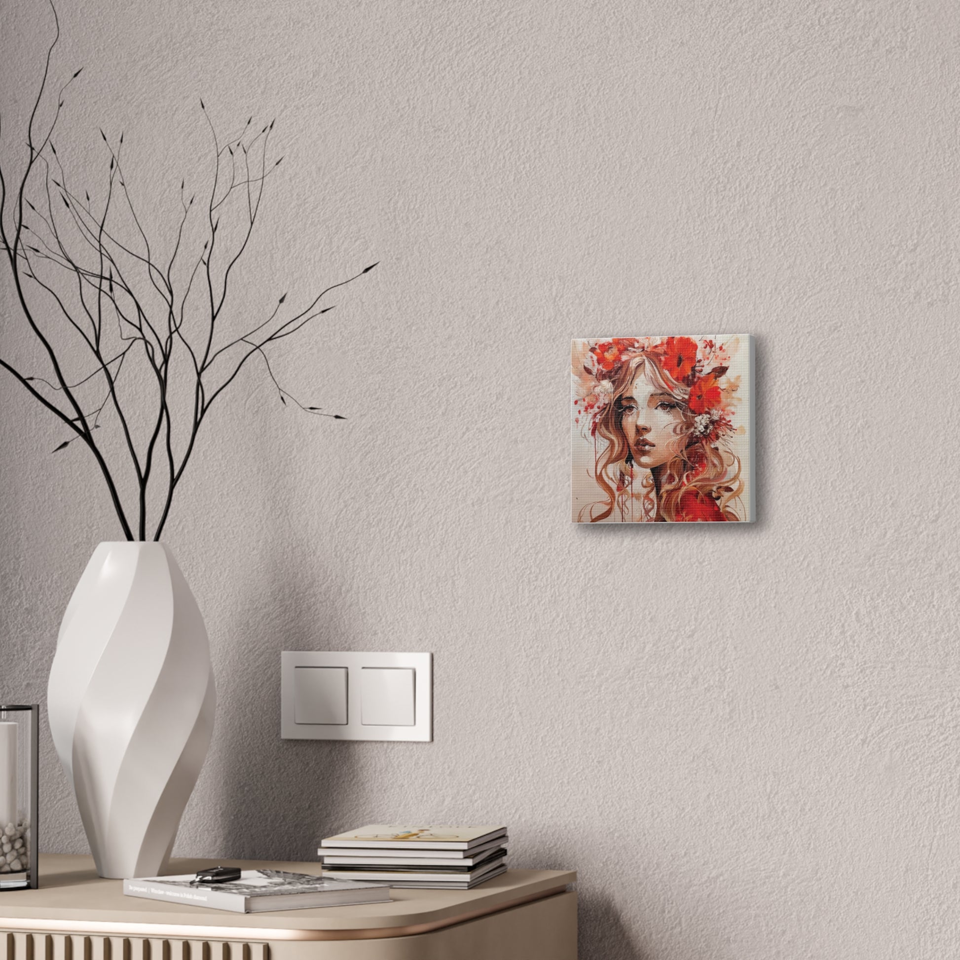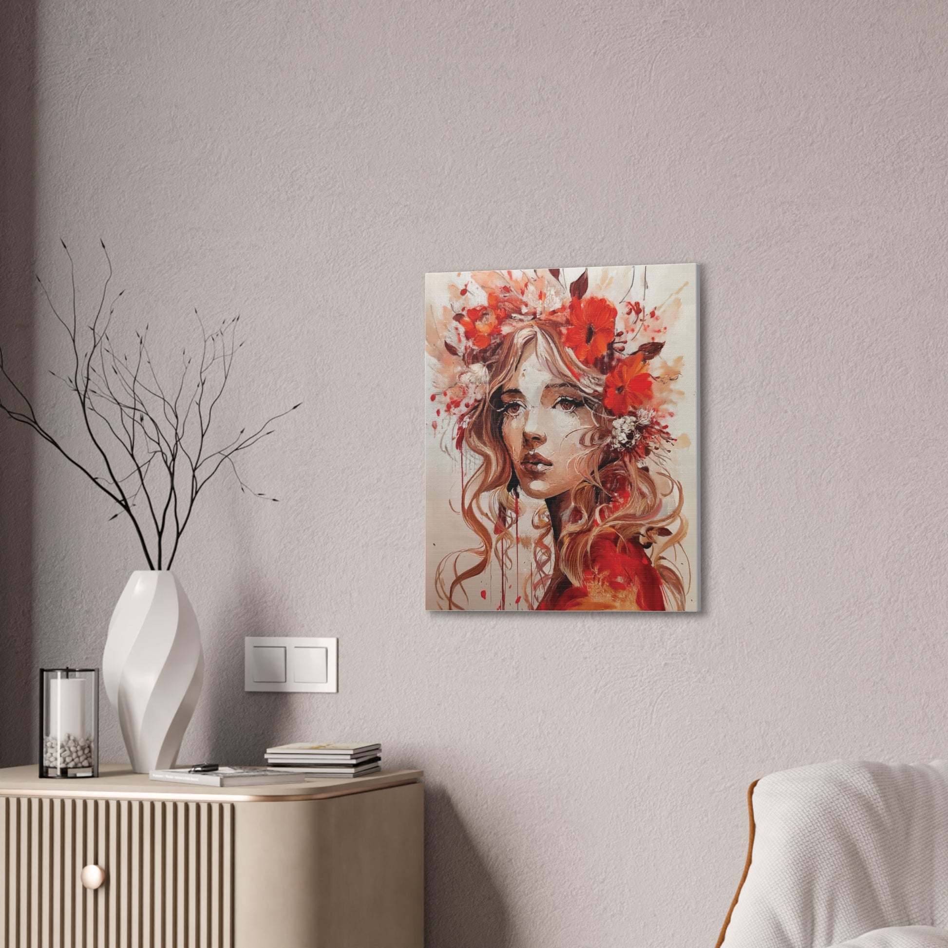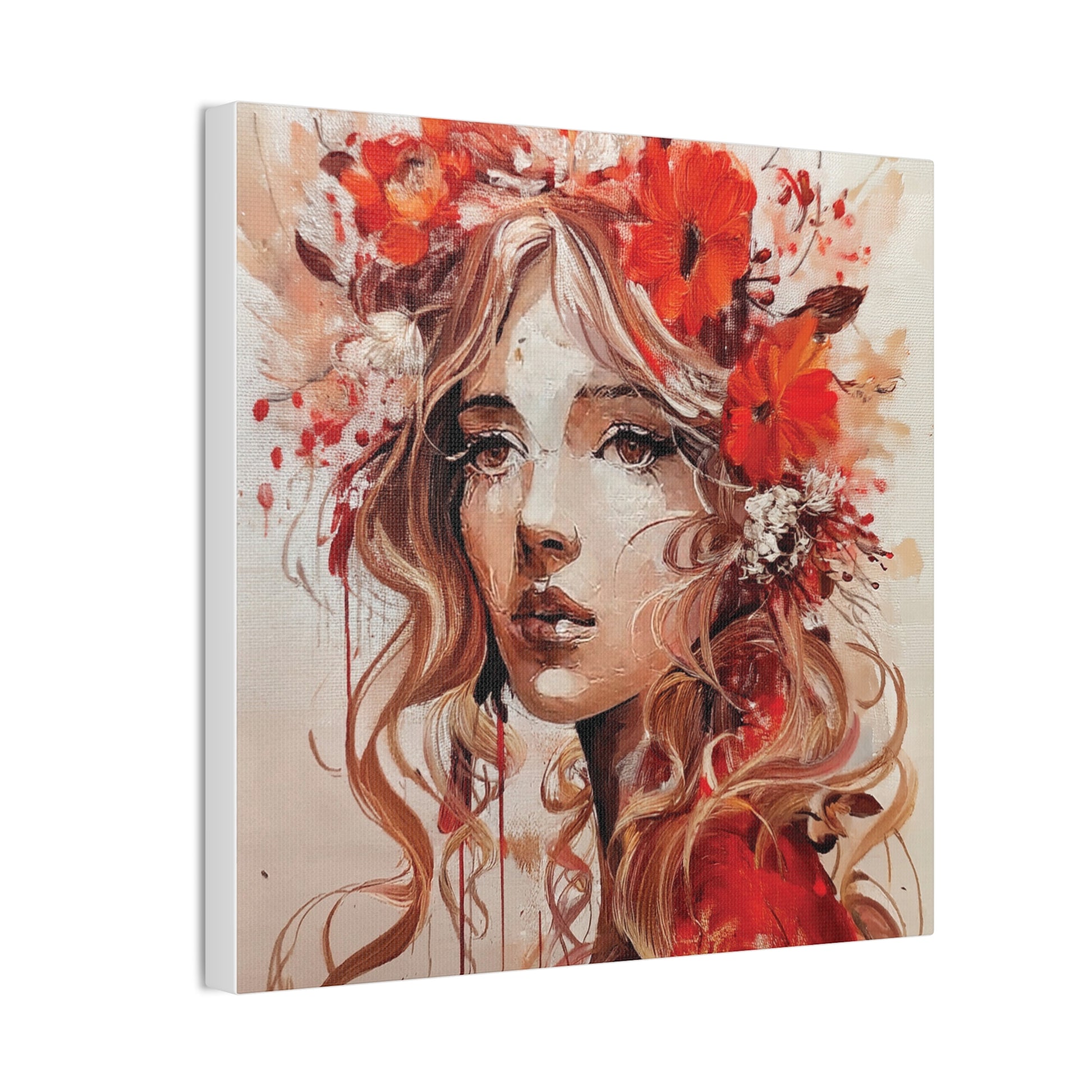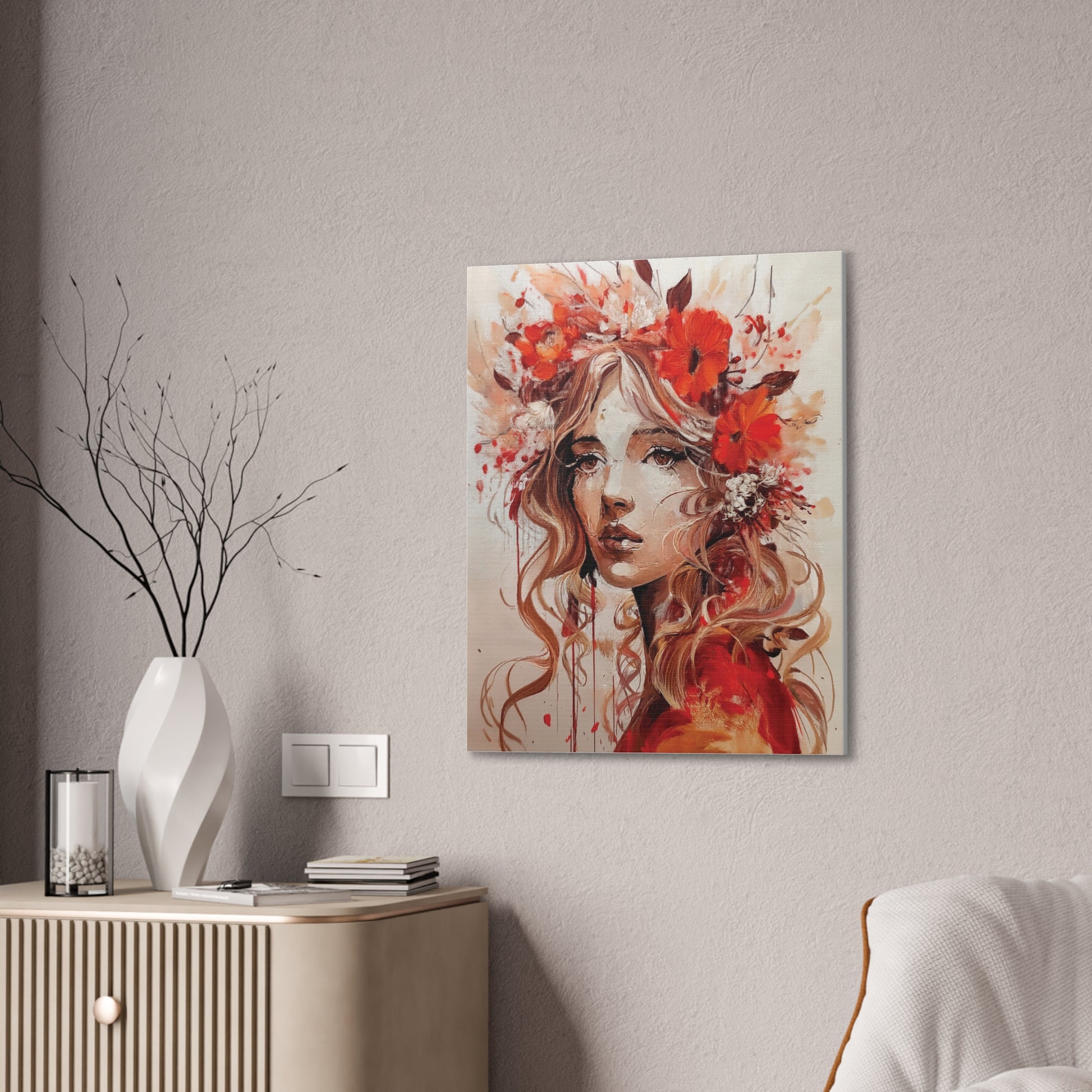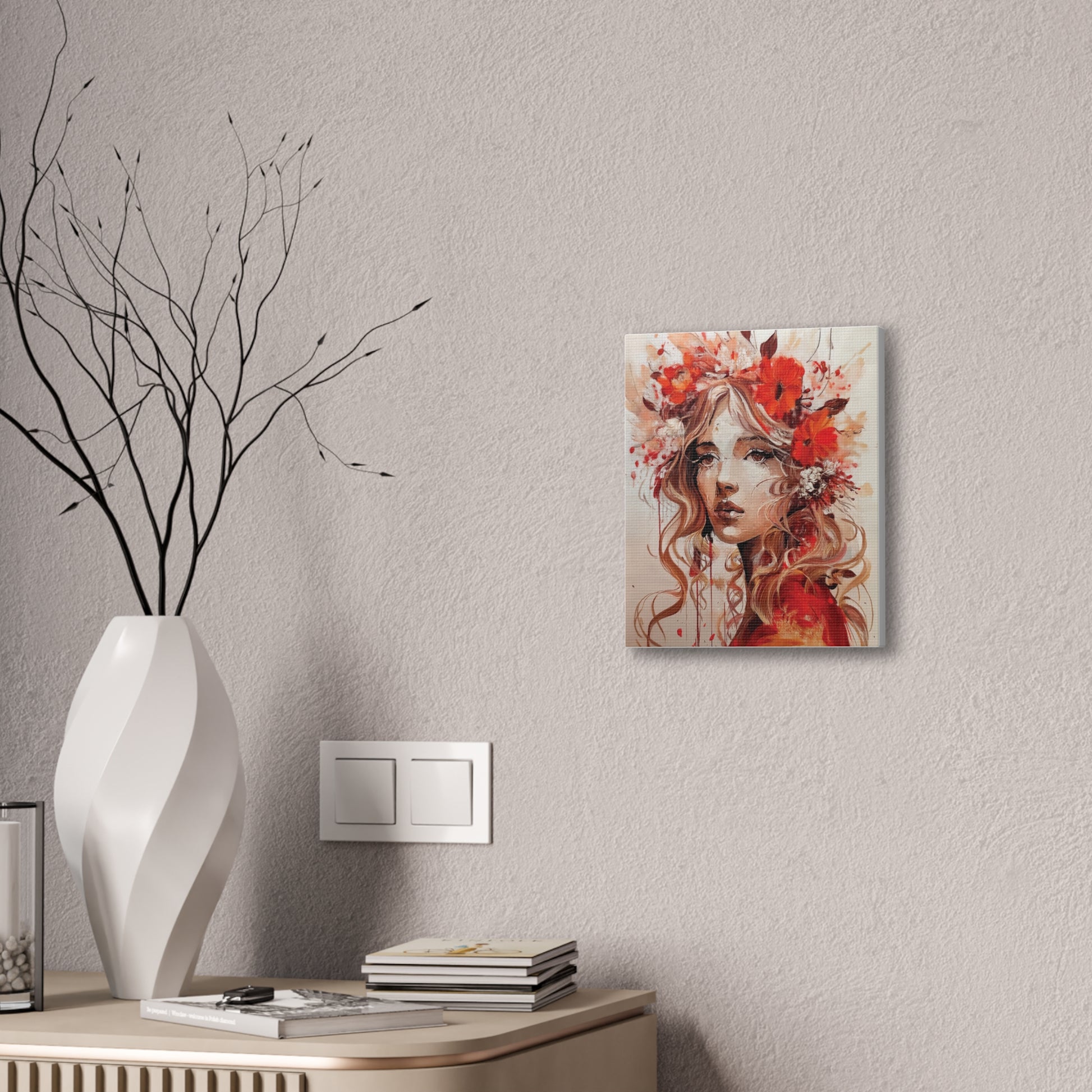Stretched Canvas Art Print - Floral Portrait, Home Decor, Gift, Wall Art, Boho Style, Art for Living Room, Unique Gift Idea