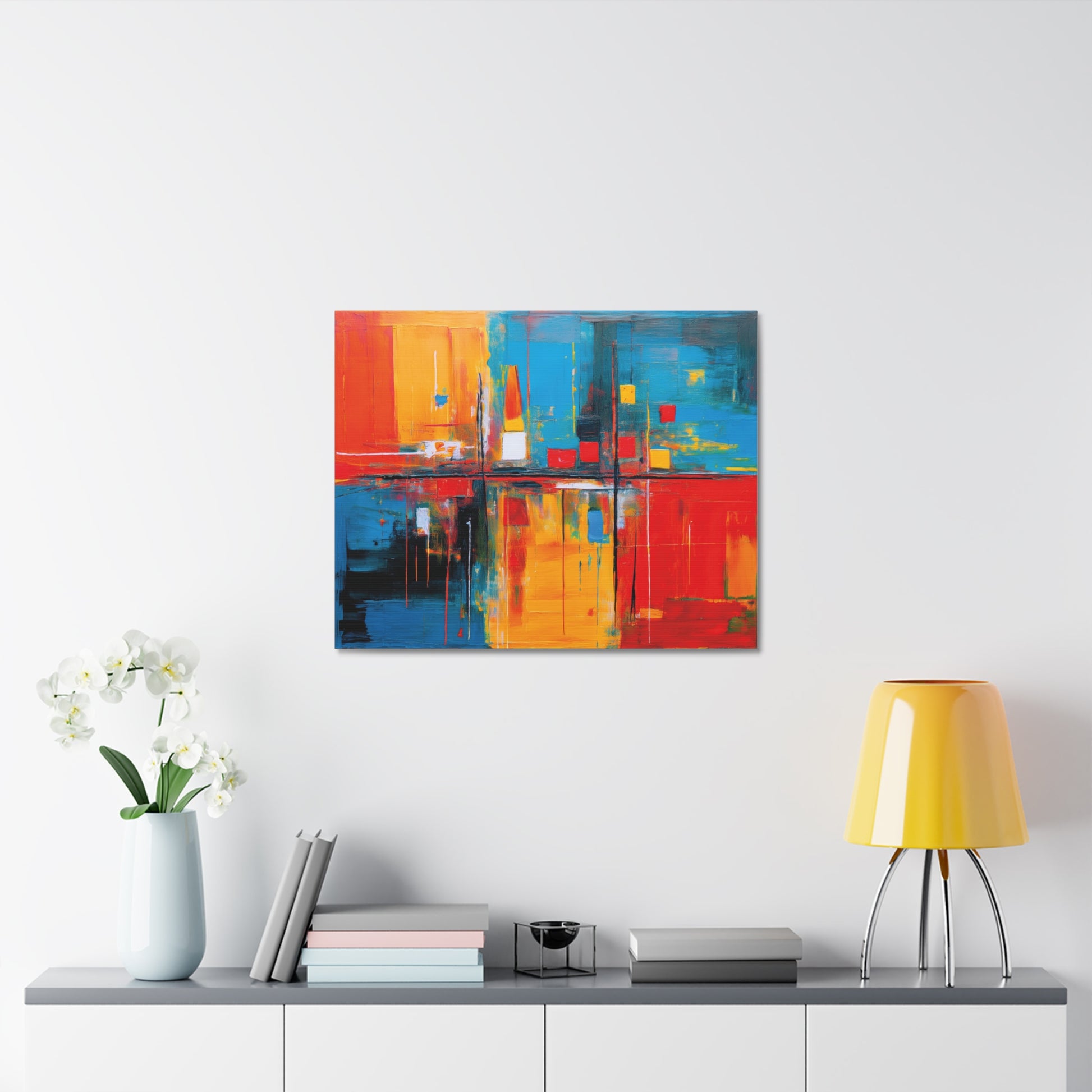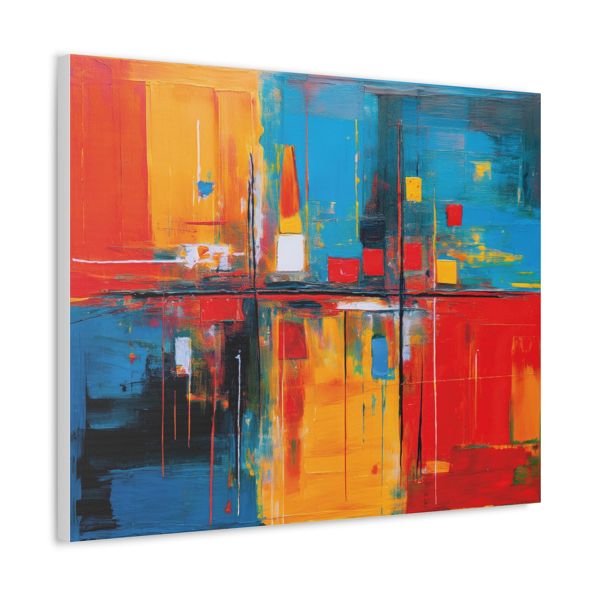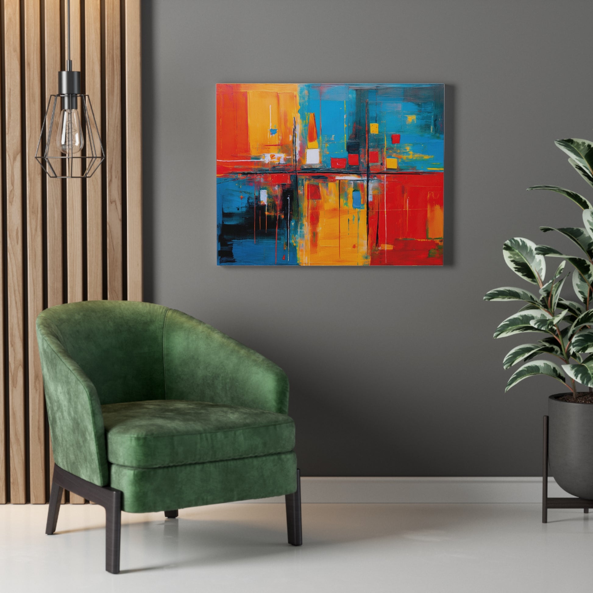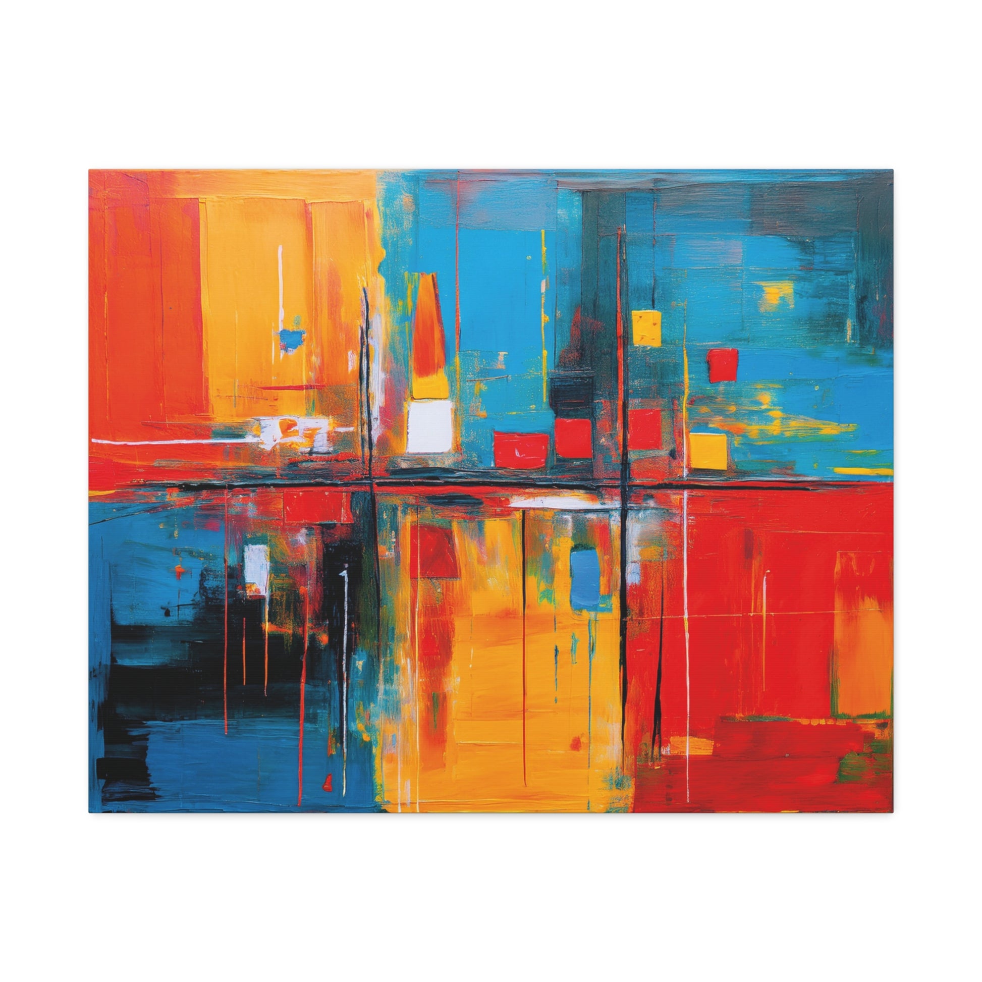 A stunning abstract painting printed on a natural white, matte, ultra smooth 100% cotton canvas. This canvas creates an artsy and elegant vibe, perfect for art enthusiasts looking to add a pop of color to their home decor. Ideal for those who appreciate unique and modern artwork. Relevant for decorating homes, offices, and art studios.
