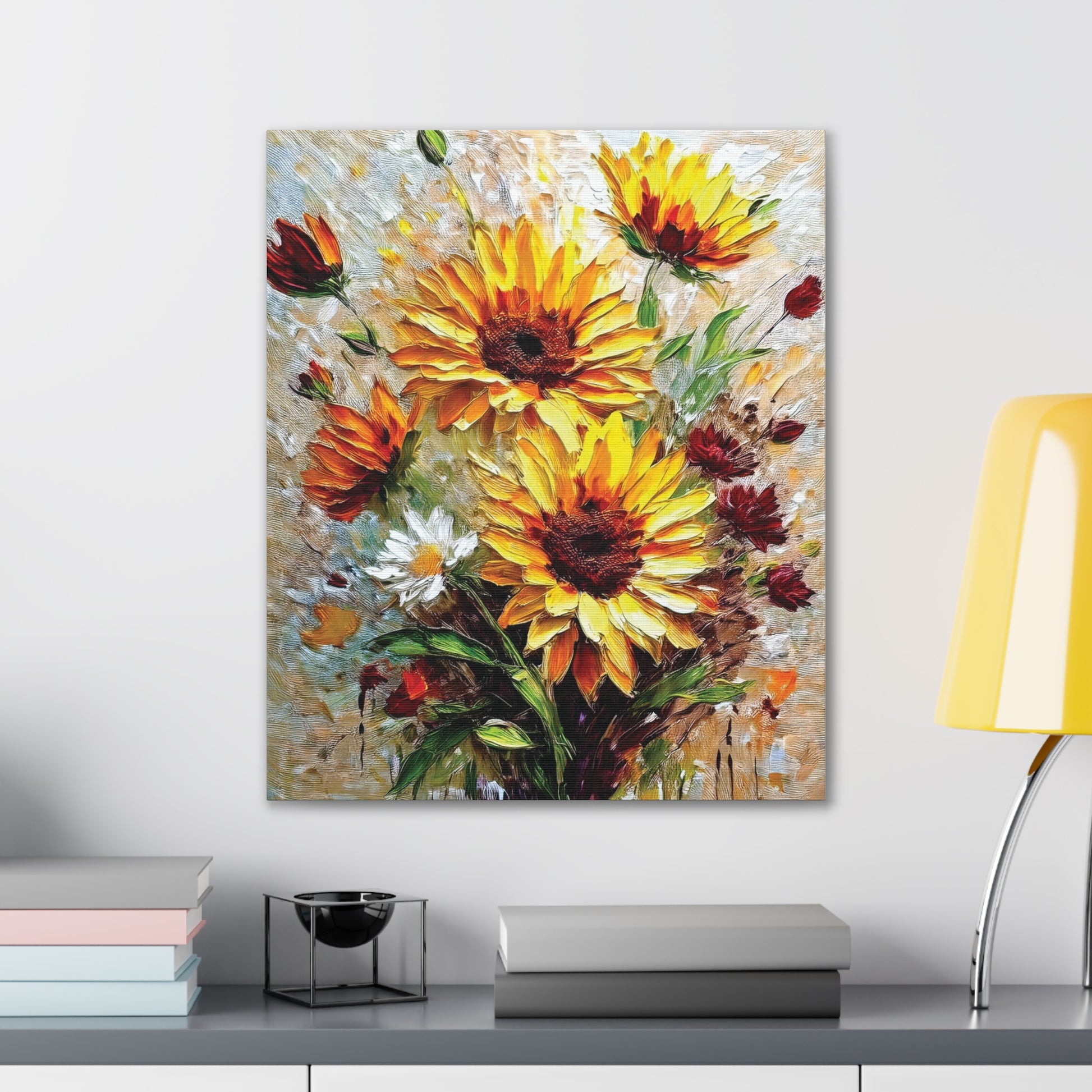 Vibrant Floral Canvas Print, Sunflower Wall Art, Home Decor, Bright Gift, Spring Decor, Nature Inspired Art